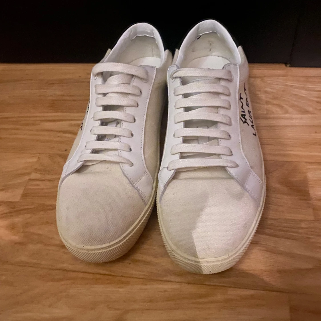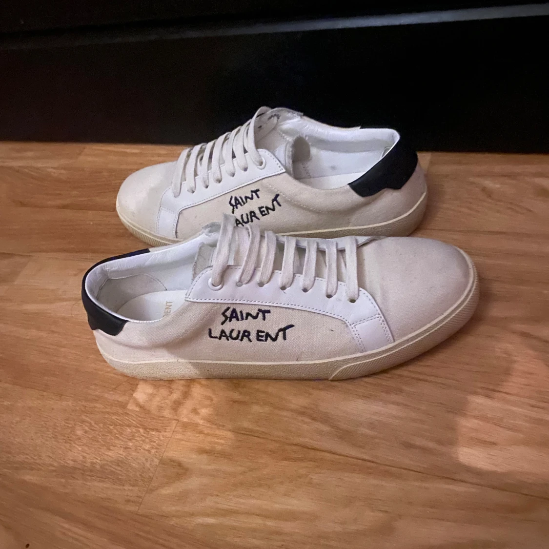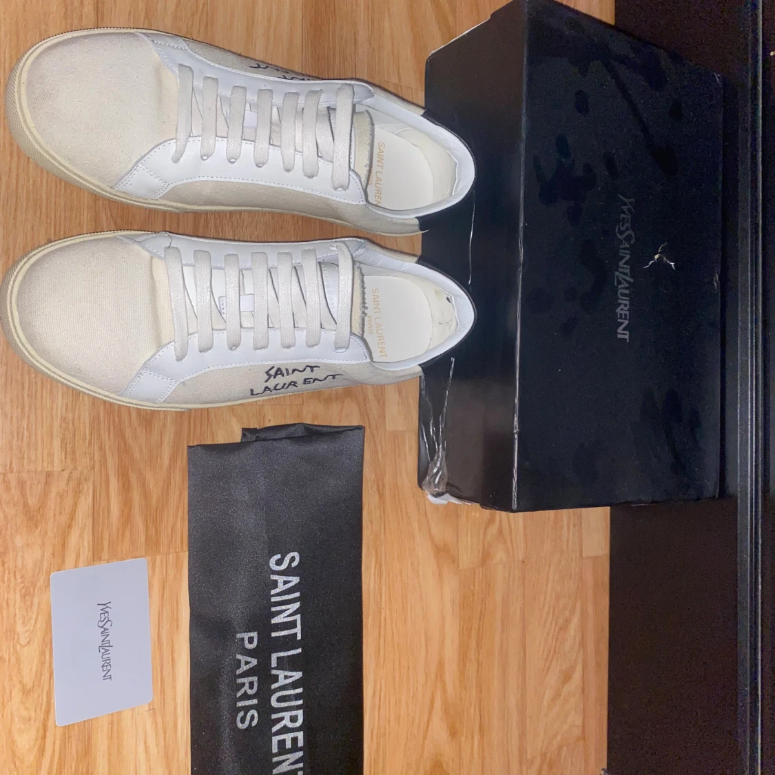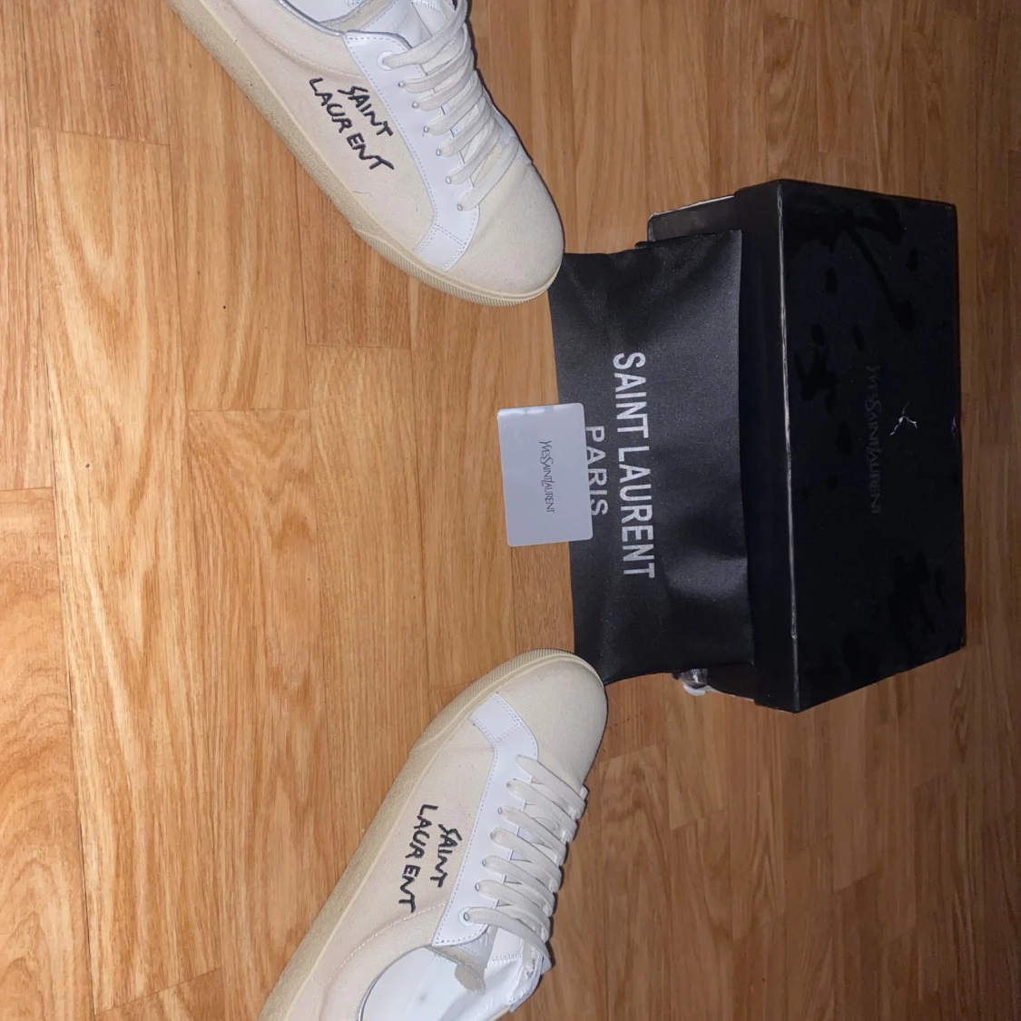 Nya saint Laurent skor i nytt skick använt någon enstaka gång och en väldigt fräsch och stilig look finns tyvärr inget kvitto,öppen för byten och boxen är i dåligt skick