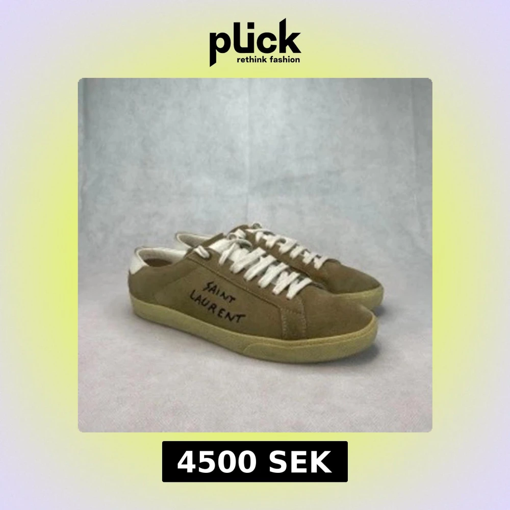 Snygga bruna sneakers från Saint Laurent med vit snörning och en diskret logga på sidan. Skorna har en klassisk design med en bekväm sula och är perfekta för en stilren look.