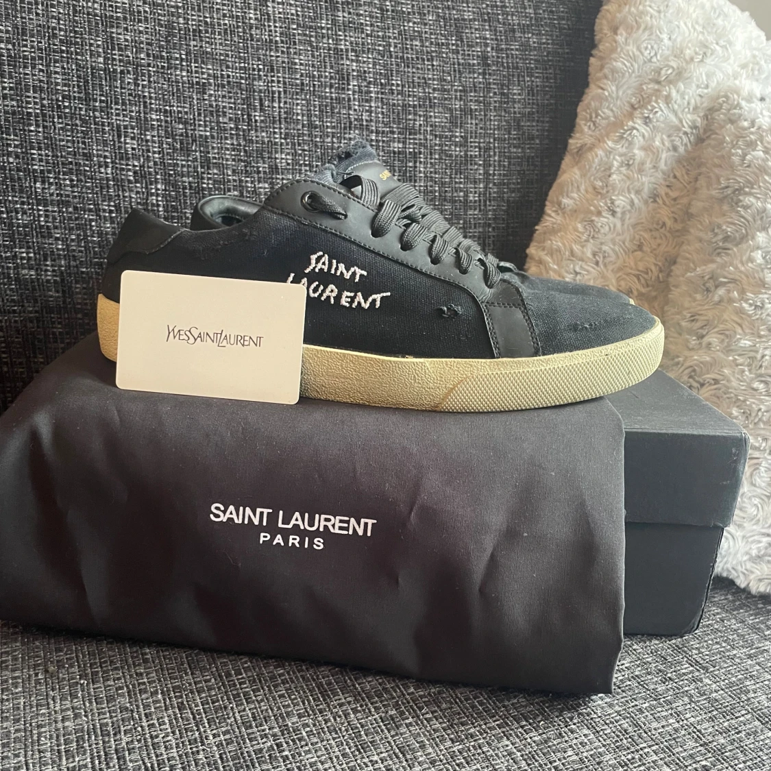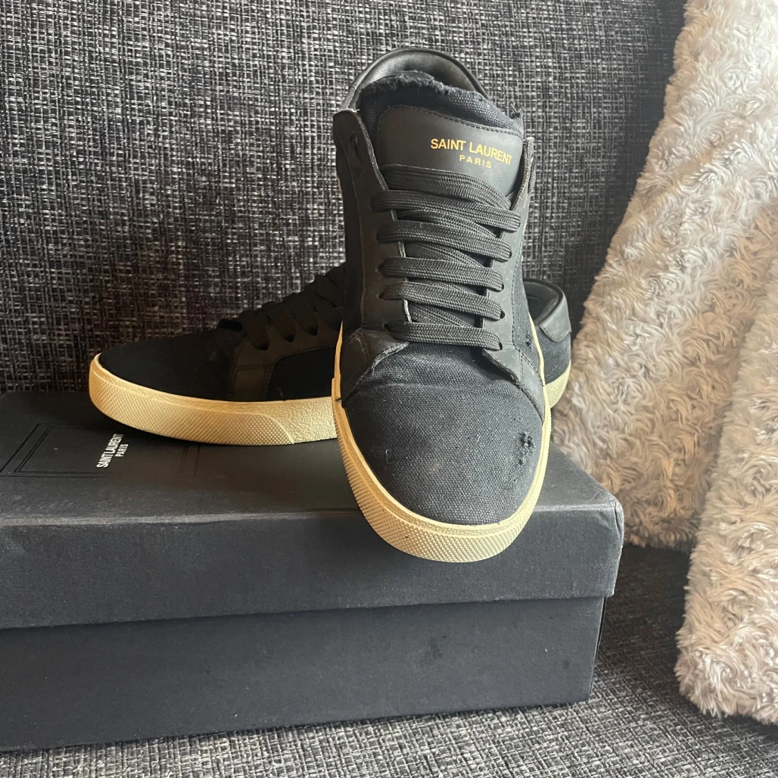 Säljer ett par riktigt schyssta saint Laurent skor för en bra peng för dig som vill ha ett par skor man kan ha när som helst👌 Säljs på grund av för lite användning och ligger och skräpar för jag har tröttnat på dem, OBS!!! På bild nmr 5 är de en liten defekt som ni kan se men skulle inte säga att de är något man tänker på och går säkert att lima ihop. Därav är priset ganska så lågt också⚡️😁