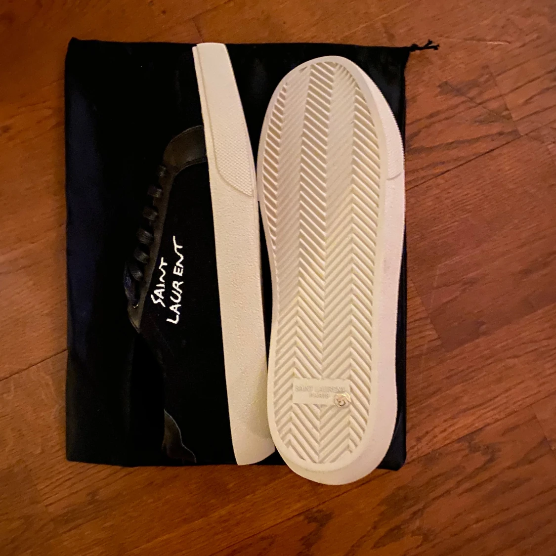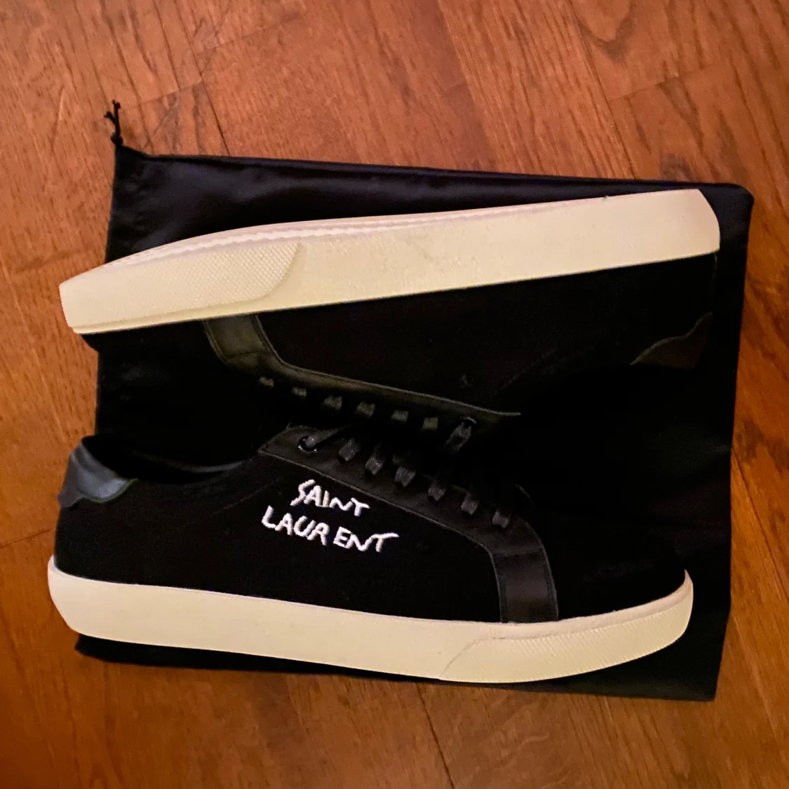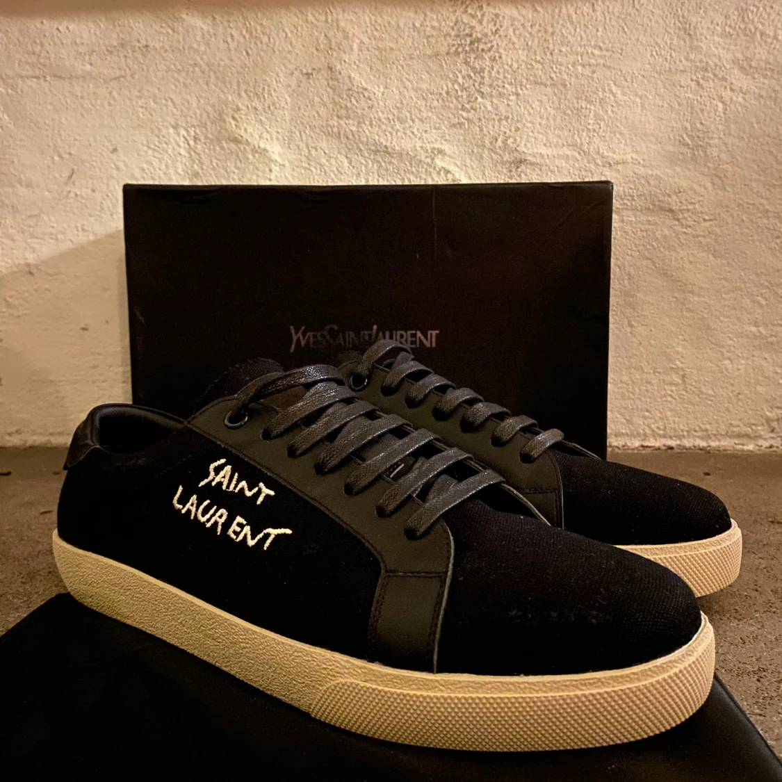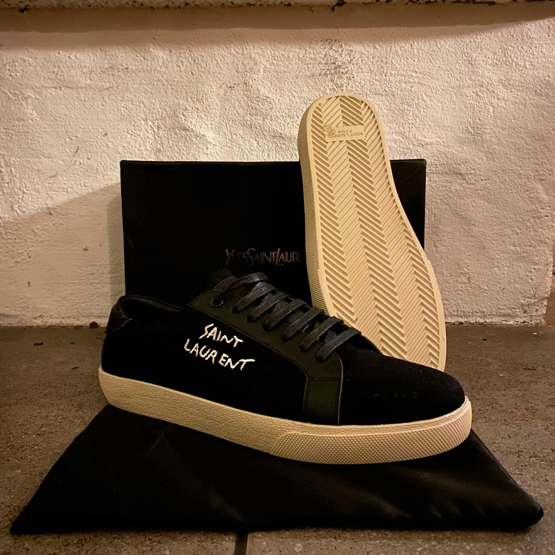 Svarta sneakers med vit broderad logga på sidan. Skorna har svart ovandel i canvas och skinn, svarta skosnören och en kontrasterande vit, platt gummisula. Snygg och stilren design som passar till det mesta. Acop