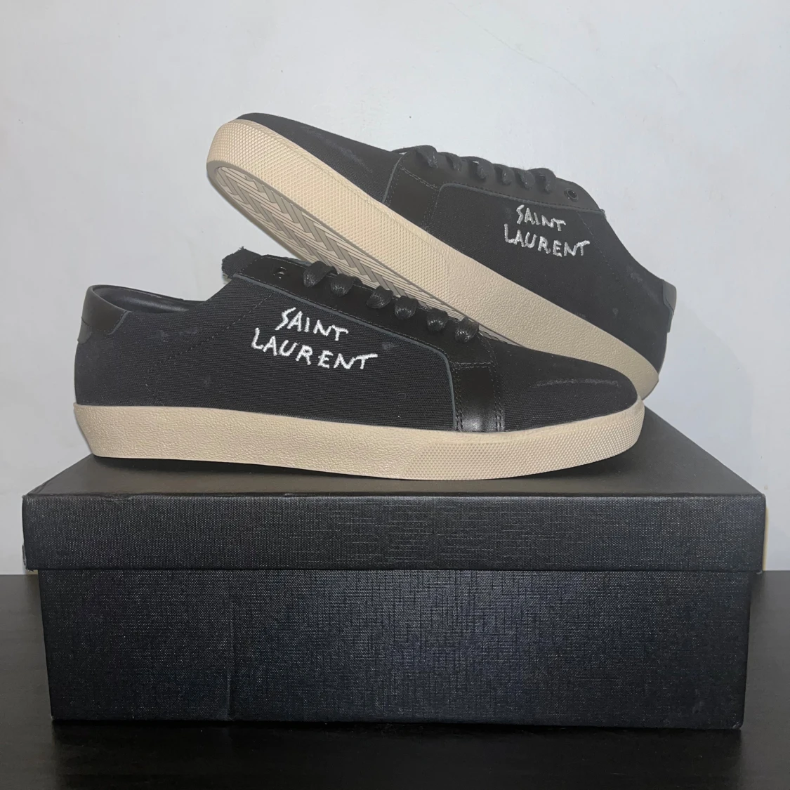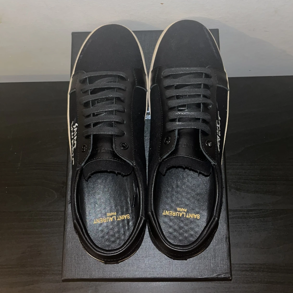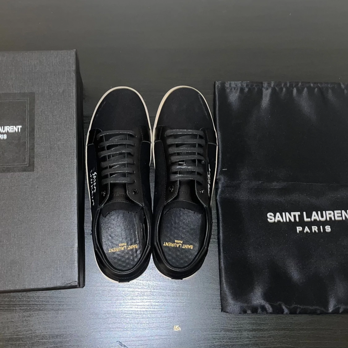 Säljer ett par helt nya Saint Laurent skor i storlek 46. Skorna är oanvända och kommer i toppskick. Medföljer en exklusiv Saint Laurent dustbag för förvaring och resor. Perfekta för dig som vill ha både stil och kvalitet.