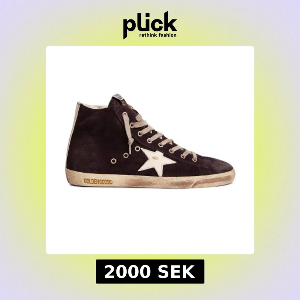 Snygga mörkblå sneakers i mocka från Golden Goose med en vit stjärndetalj på sidan. Skorna har snörning och en vintageinspirerad look med GGDB-logga på plösen.