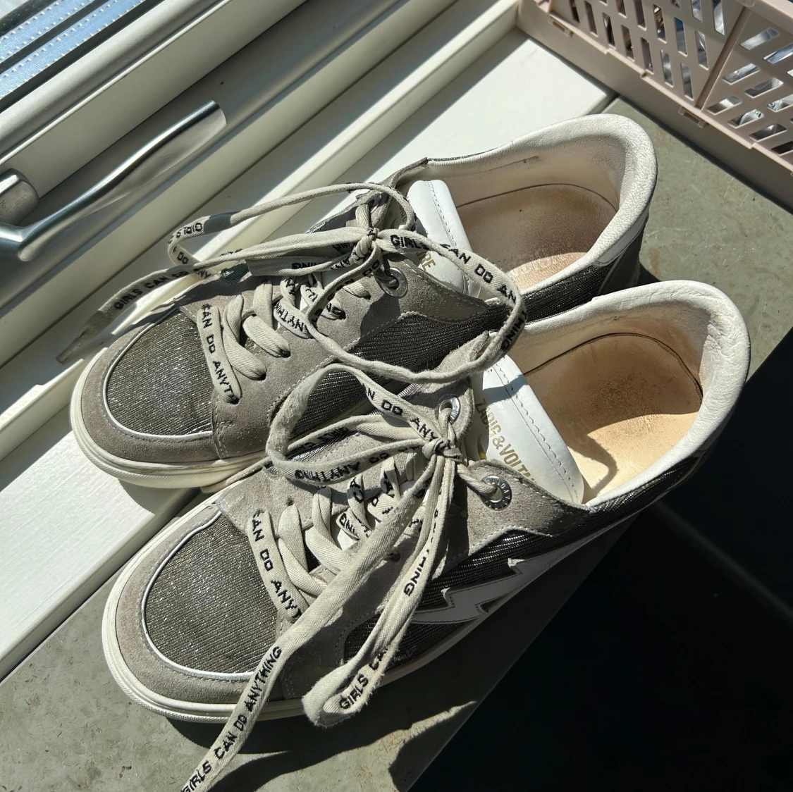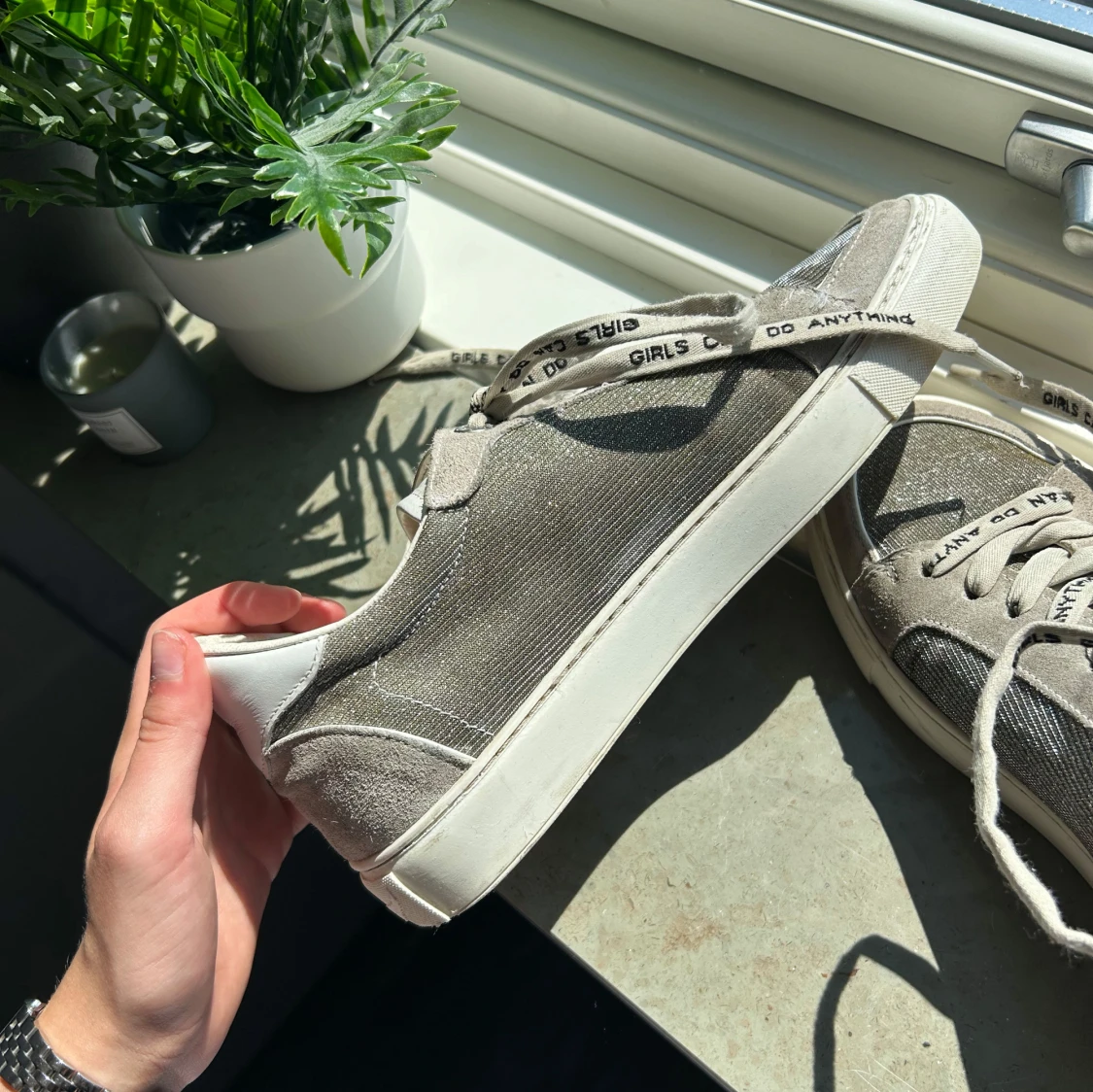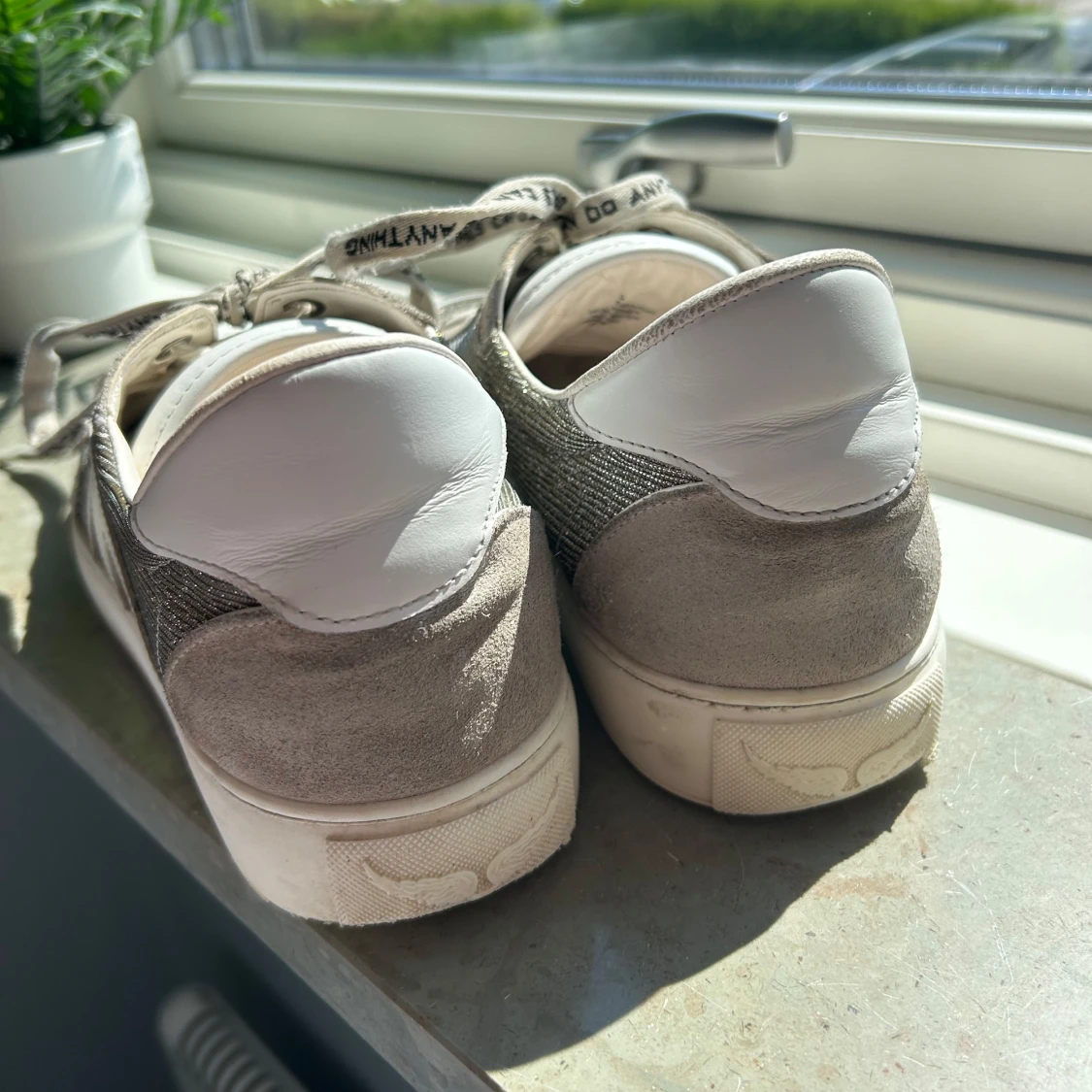 Sulorna har fläckar från mina strumpor som färgat av sig men dem skickas med och det går att köpa nya sulor! Dustbag tillkommer!!🥰🥰vill gärna få sålt dem så snabbt som möjligt då jag vill köpa nya skor. (PRIS KAN DUSKUTERAS)