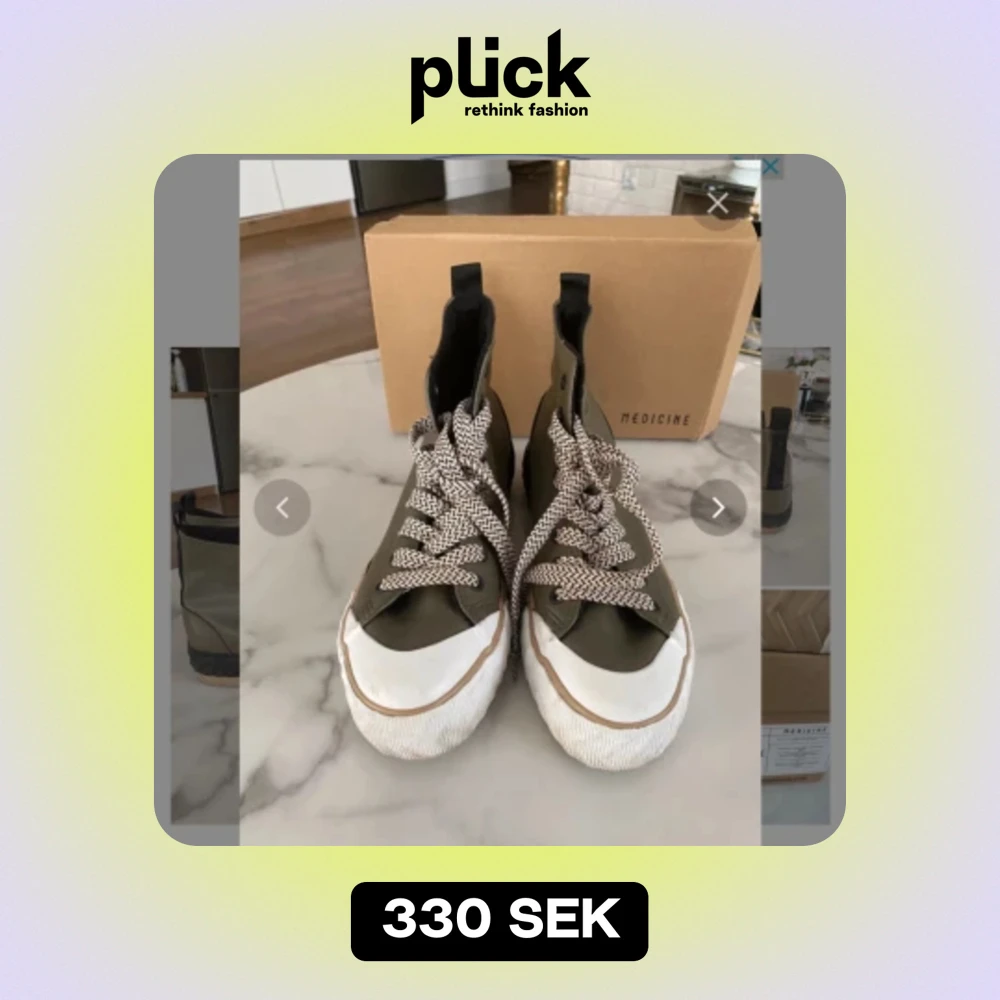 Såå snygga khaki-gröna snearkers som är använda typ 2ggr!! Rekommenderar starkt men passar tyvärr inte mig:(( perfekta till vår/höst😍 innersulans längd: 25 cm
