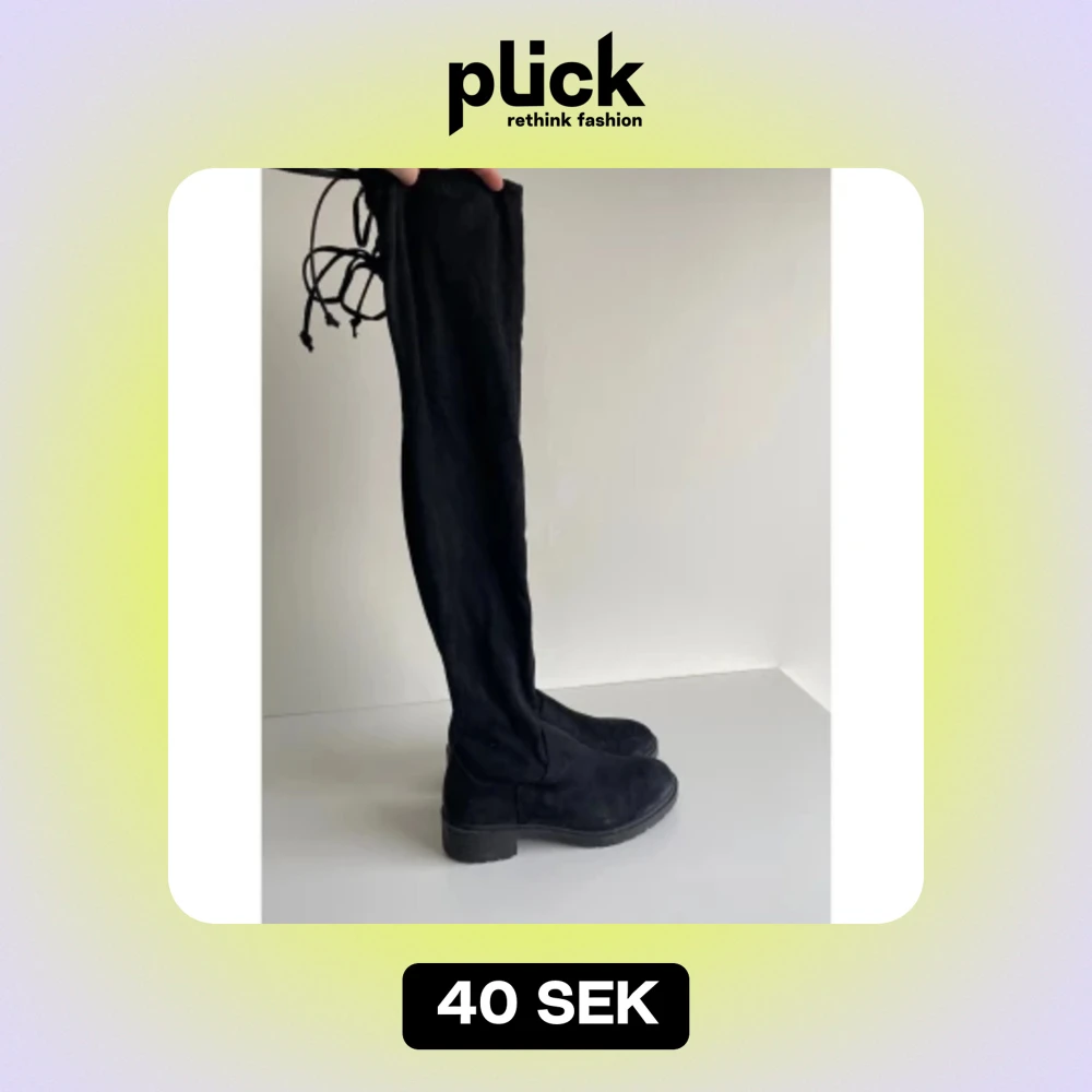 Svarta stövlar som går upp över knäna från New Look (Zalando) i strl 36. Mockaliknande material och snöre bak. Klackhöjd ca 3 cm och höjd från häl till knä ca 60 cm. I fint skick, använda fåtal gånger. Kommer från djur- och rökfritt hem.