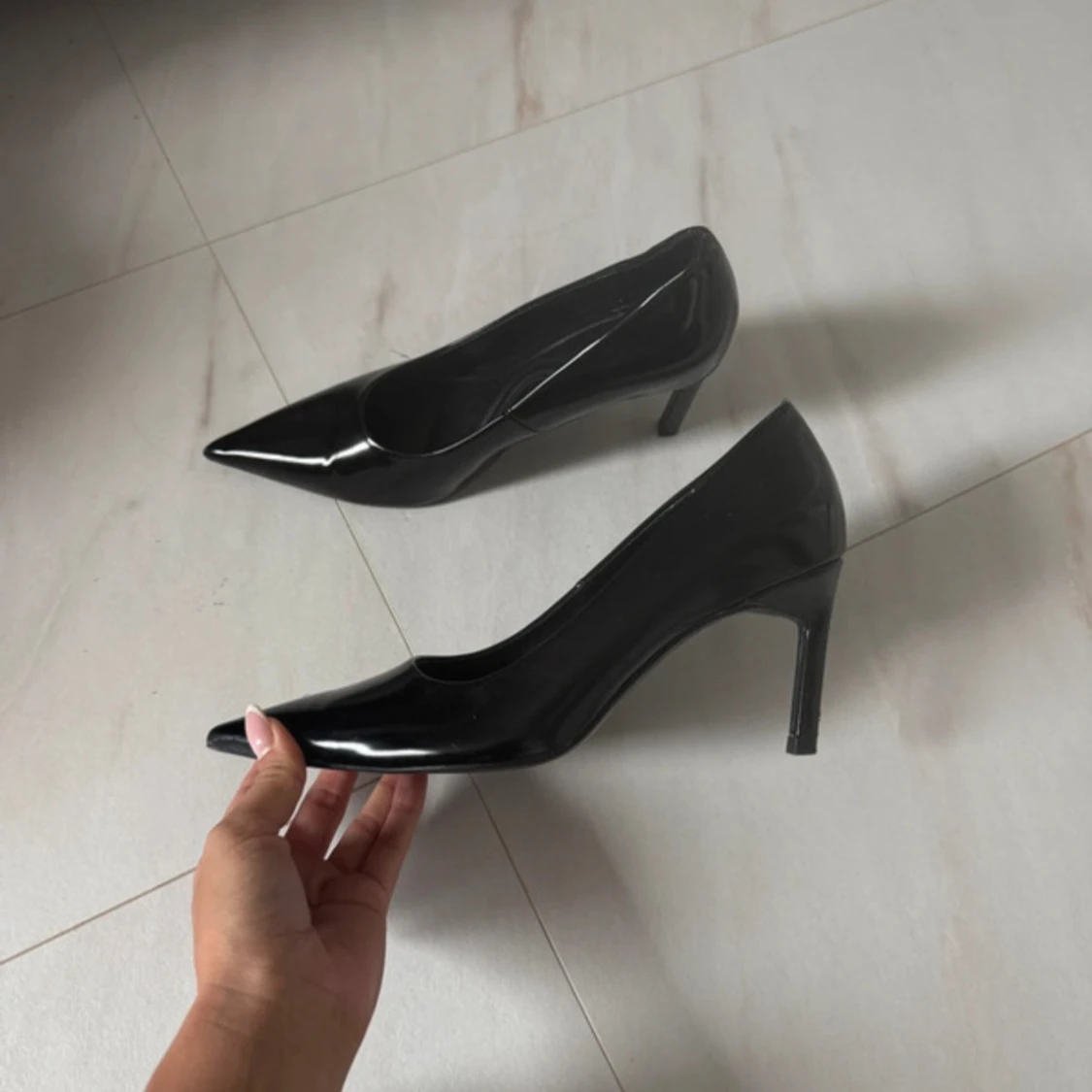 Säljer ett par klassiska svarta pumps med spetsig tå och är ca 4-5cm klackhöjd