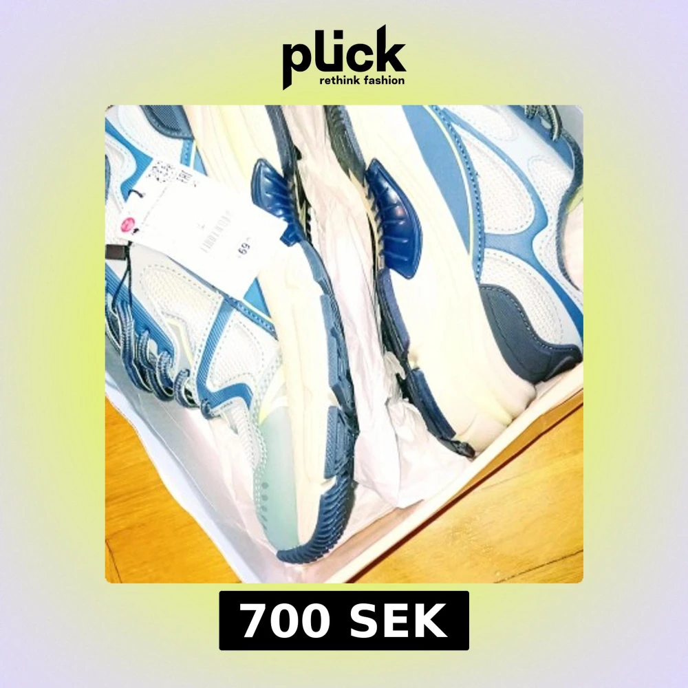 Snygga sneakers i blått och vitt med coola meshpaneler och detaljer i olika blå nyanser. Skorna har snörning och en chunky, beige sula med blå inslag. Perfekta för dig som gillar sportig stil och vill sticka ut lite extra.