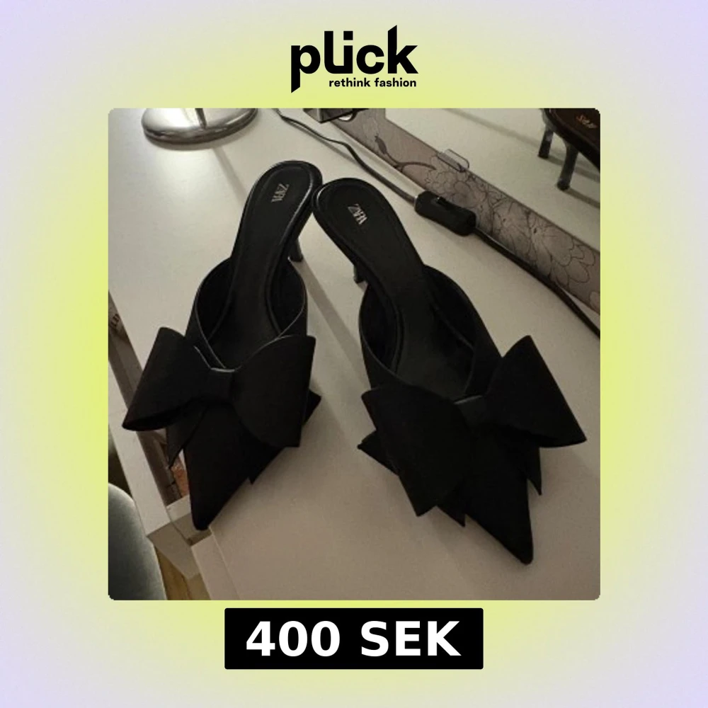 Svarta klackar med rosett från Zara andvänd endast 2 gånger. Jätte jätte fina klackar. Kostar 500 kr nya