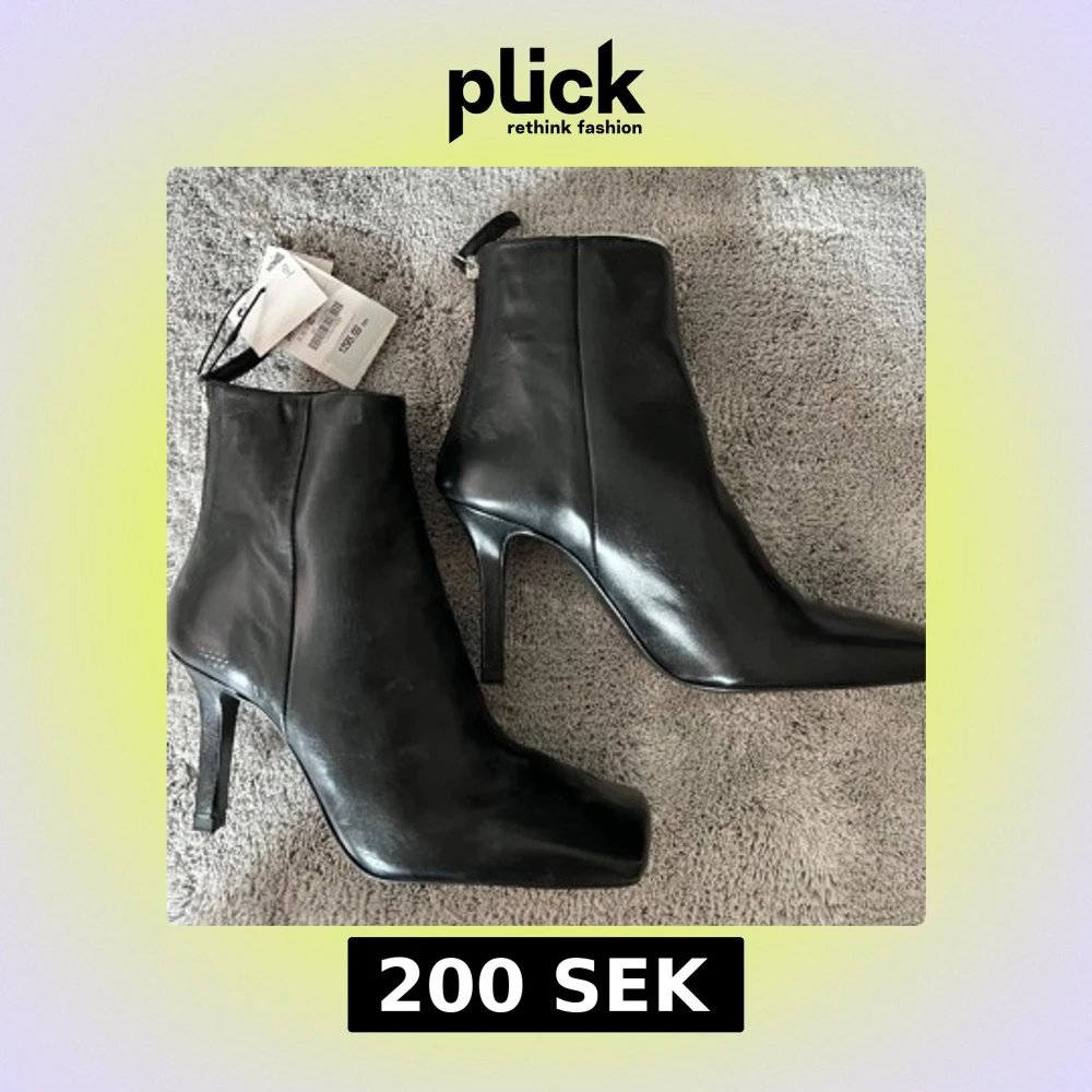 Stilrena svarta stövletter från Zara.Modellen har fyrkantig tå, smal hög klack på 5 cm och dragkedja bak. Perfekta för dig som gillar minimalistisk och trendig look. Snygga till allt. HELT NY, oanvänd och ursp. pris låg på 1295 kr.
