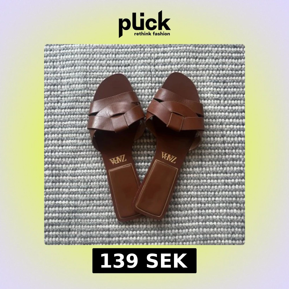 Snygga bruna sandaler från Zara med flätad design. Perfekta för sommardagar med en stilren look. Sandalerna har en öppen tå och är tillverkade i ett skinnliknande material.