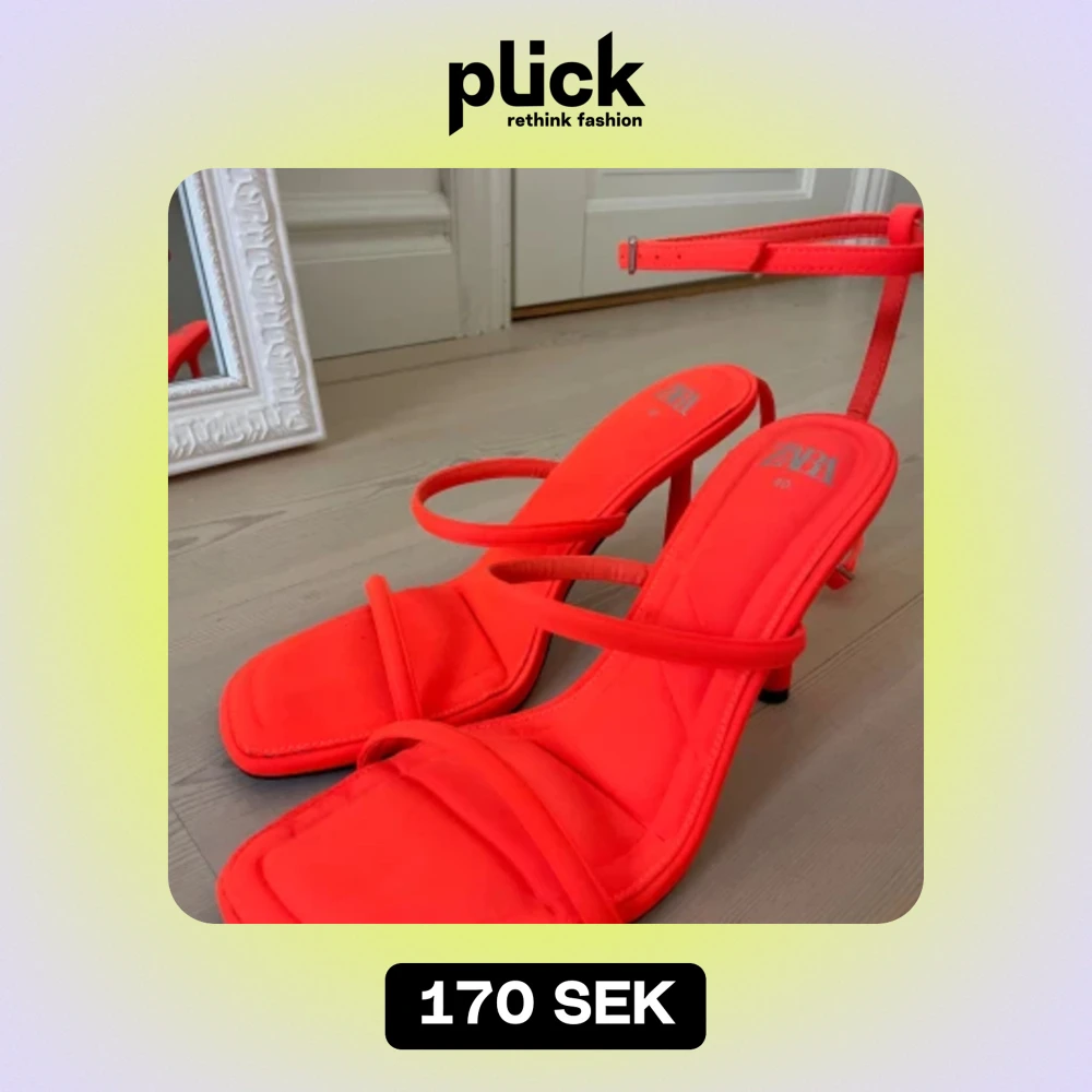 Ett par oanvända orangea klackar från Zara köpta för 2 år sedan. 10 cm hög klack och i storlek 40, men de är lite mindre i storleken.