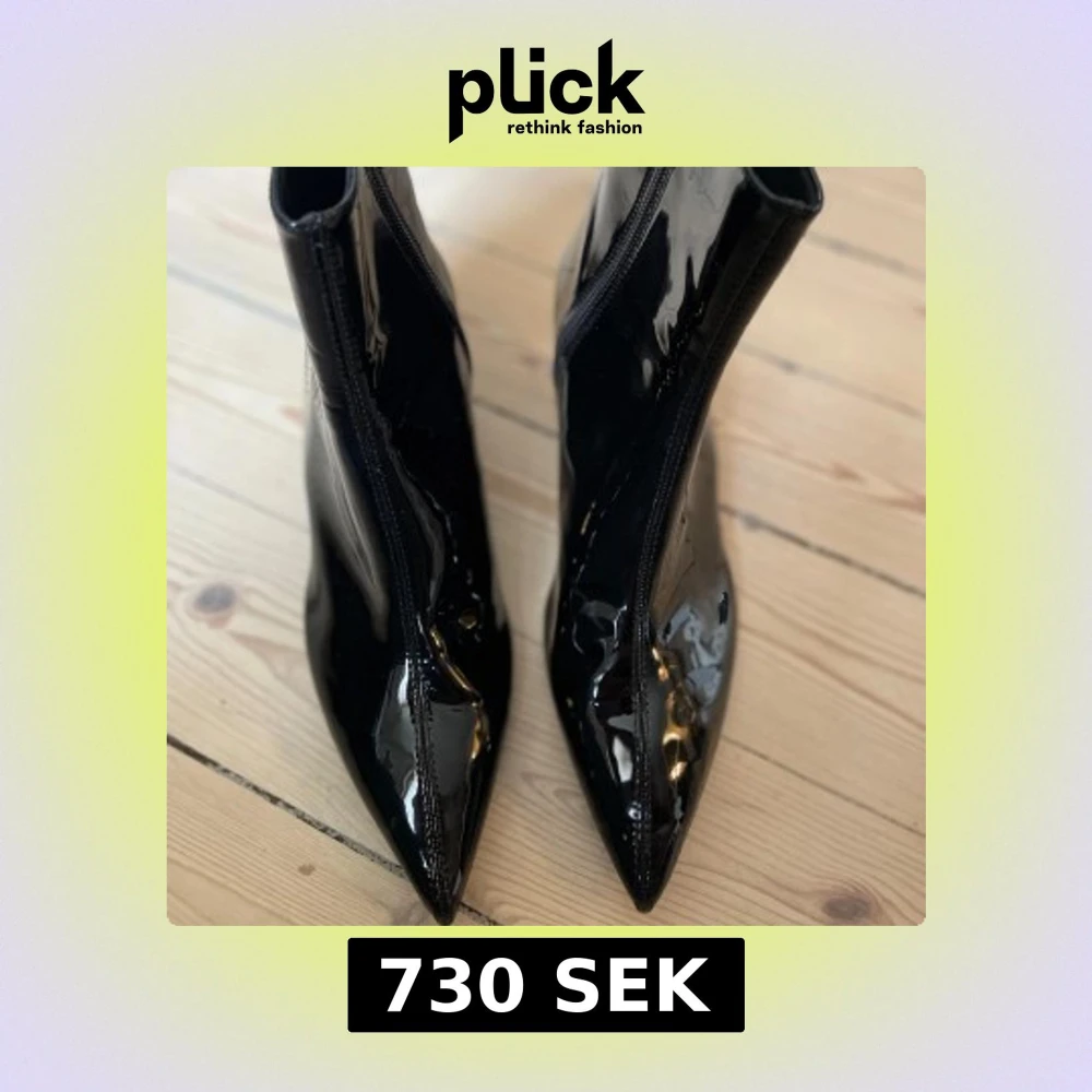 Snygga svarta stövletter i lack med spetsig tå och dragkedja.