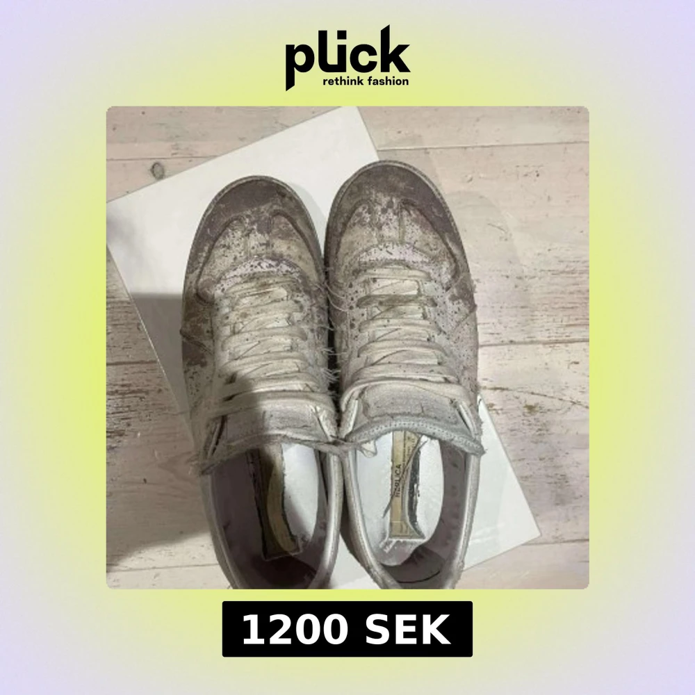 Unika sneakers vit och grå färg med distressed och smutsad look. Skorna har snörning, rund tå och platt sula. Tillverkade i skinn och textil för en edgy vibe. Perfekta för dig som gillar statement pieces och streetwear.