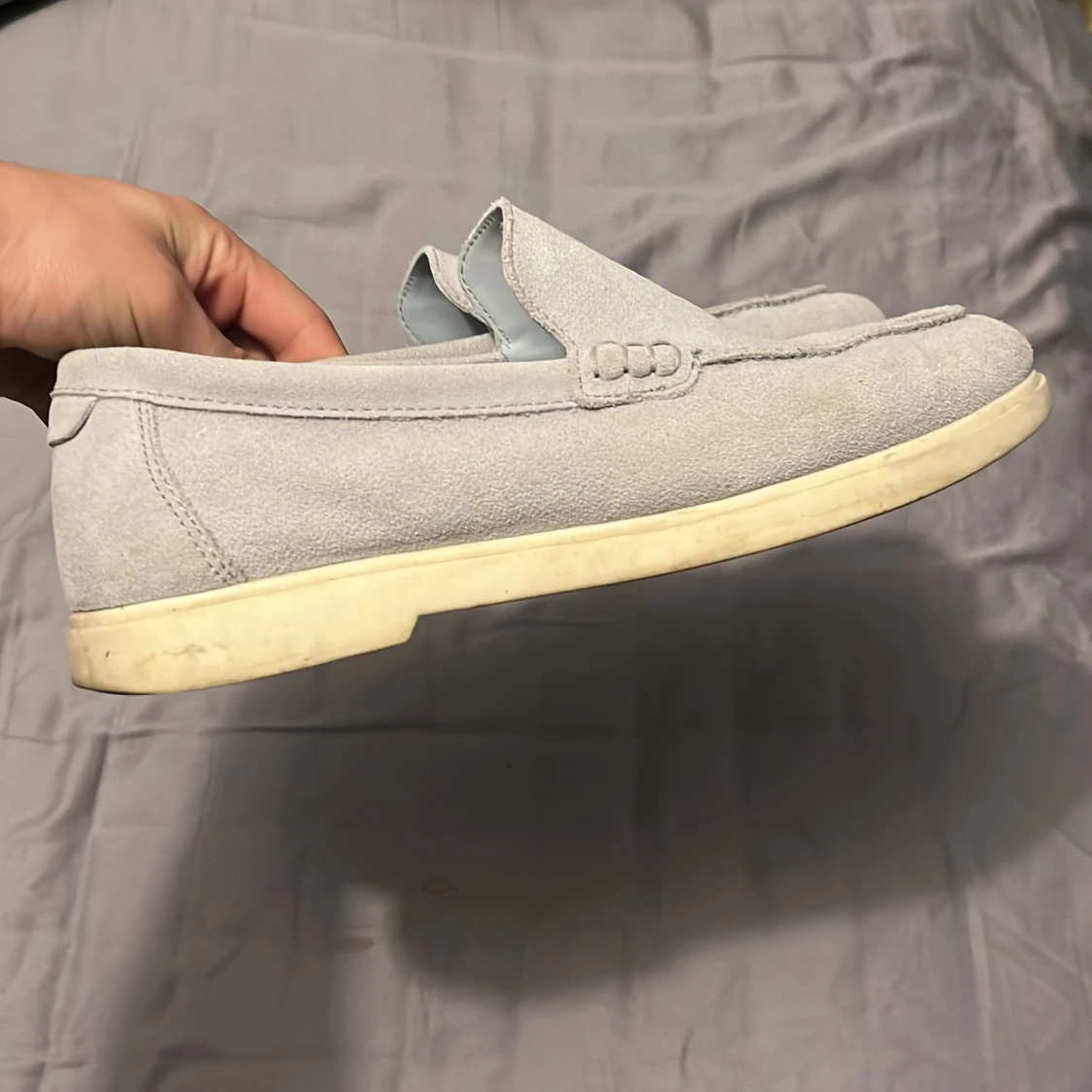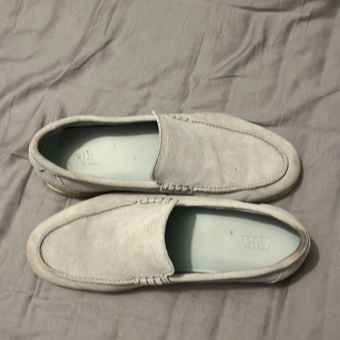 Snygga grå loafers från Zara i mocka. Perfekta för en stilren look med en bekväm passform. De har en klassisk design med en ljus sula som ger en modern touch.