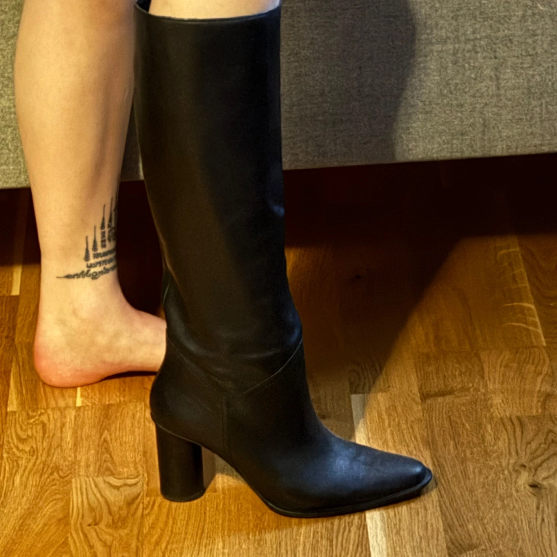 Säljer ett par zara svarta stövlar i skinn med en stabil klack. I storlek 40 ❤️aldrig direkt använt dom