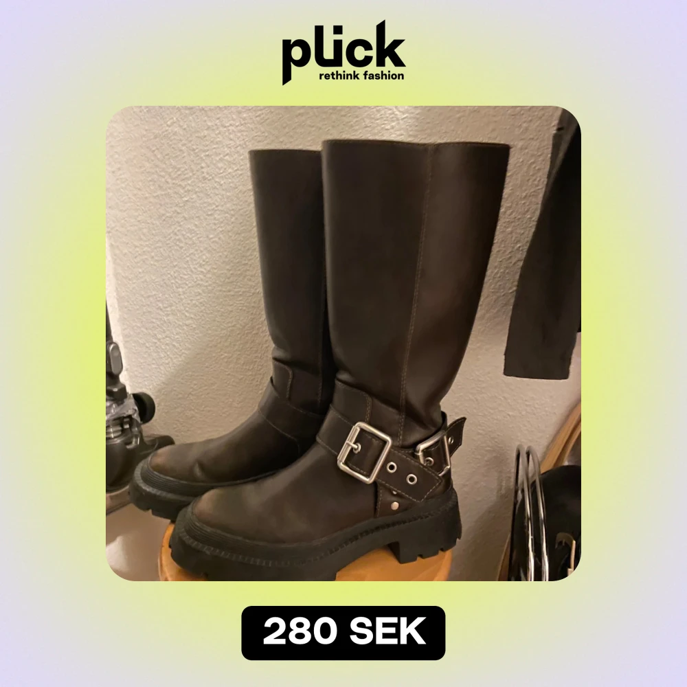 Säljer ett par snygga bruna stövlar från zara med coola spännen på sidan. De har en rejäl sula som ger bra grepp och en stilren look. Perfekta för höst och vinter