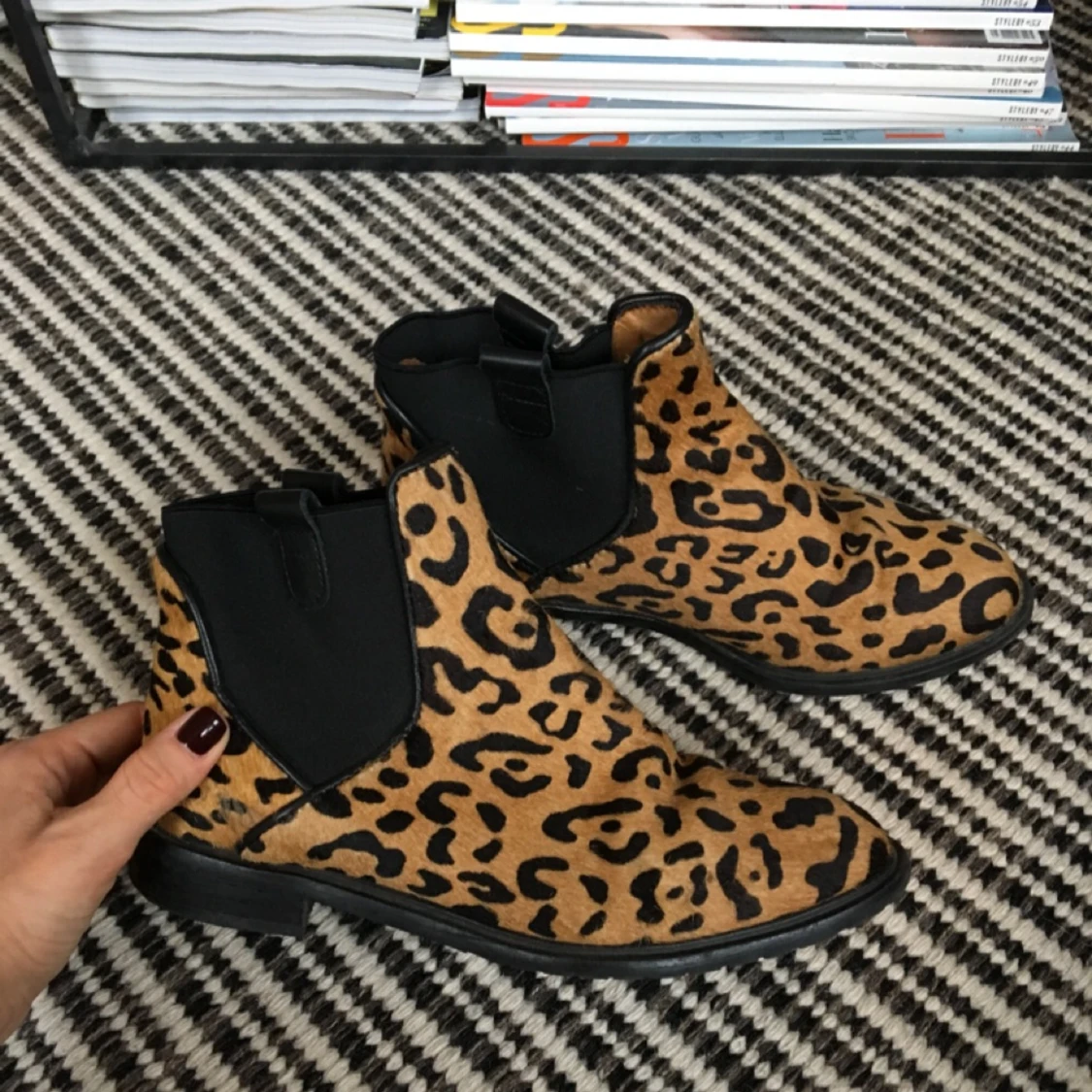 Boots i leopardmönstrat läder med ”hårig” yta.