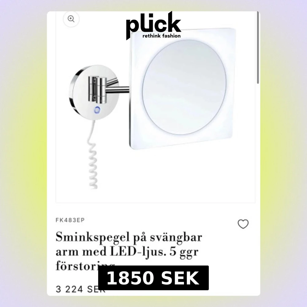 Sminkspegel från Smedbo med rund spegelyta och inbyggd LED-belysning. Spegeln har 5x förstoring och sitter på en svängbar arm i kromat metall. Monteras på väggen och har spiralformad sladd för elanslutning. Perfekt för sminkning och detaljarbete. Helt ny. Nypris 3224kr.