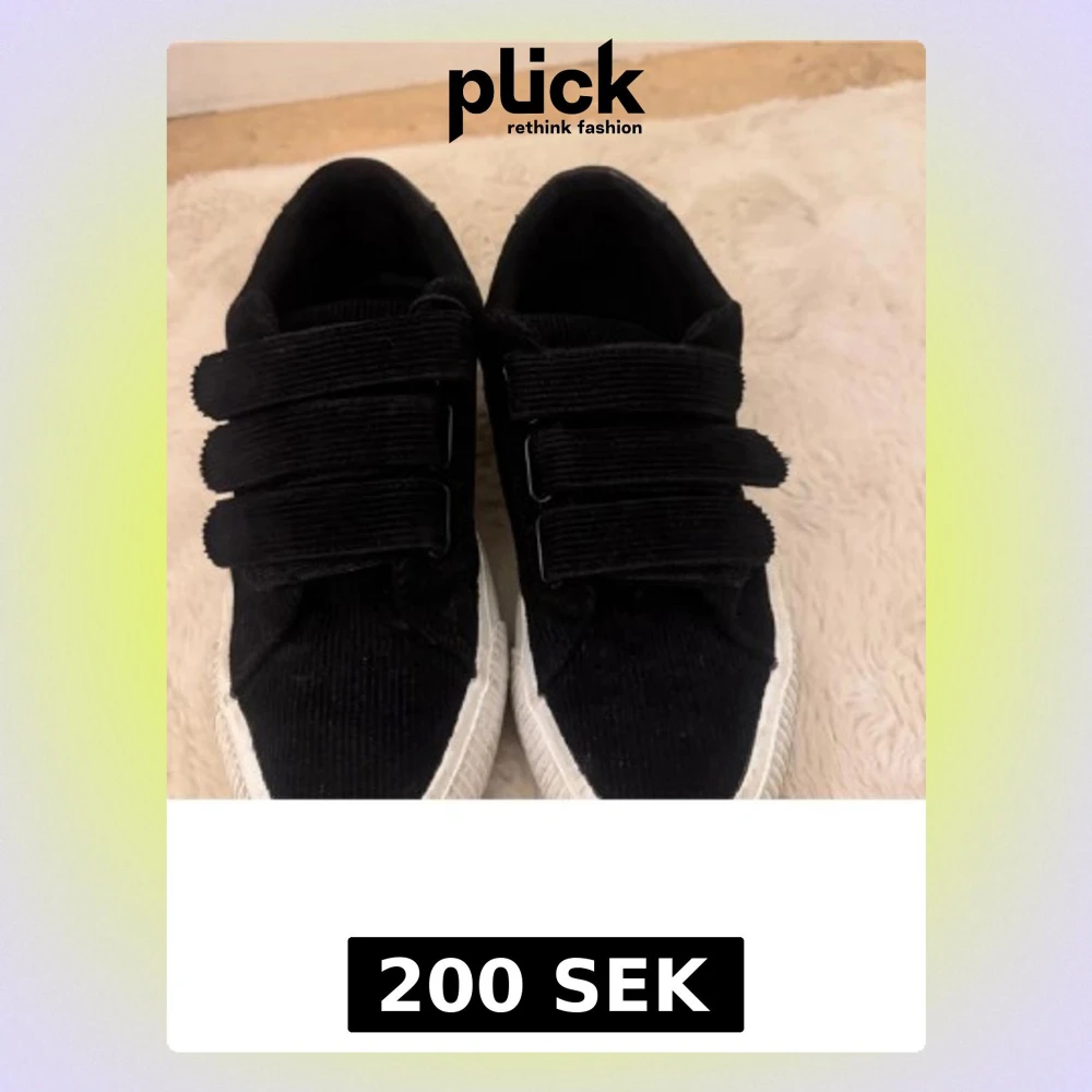 Ett par skor med carborre band och svart ribbad mocka storlek 38 och knappt andvända. Köpte dem här på Plick