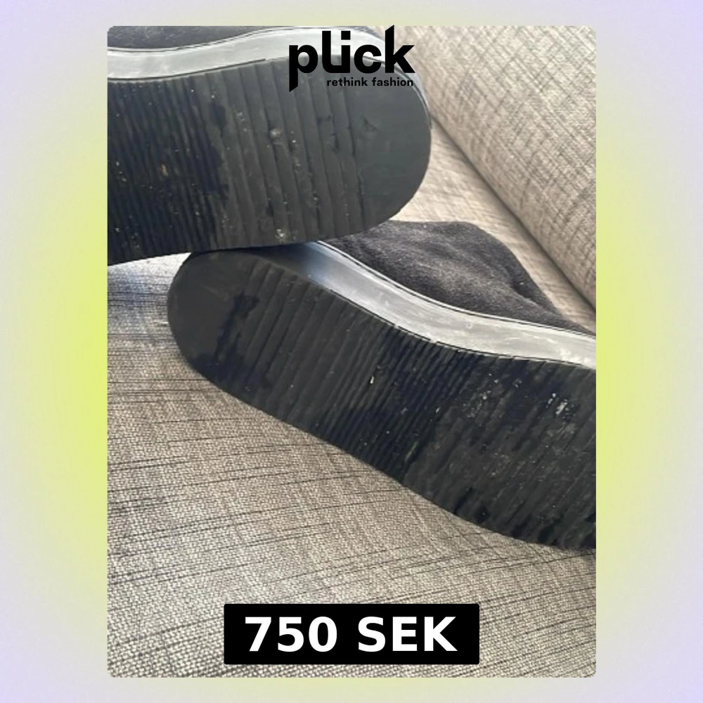 Säljer ett par svarta sneakers med chunky sula och dragkedja framtill. Skorna har en stilren design i mockaliknande material och helsvart look. Perfekta för dig som gillar en clean och modern stil.