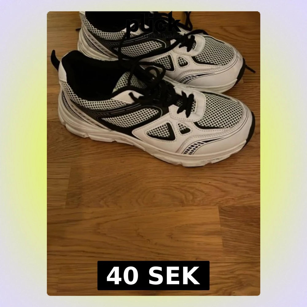 Snygga sneakers i vitt och svart med meshdetaljer och svarta snören. Skorna har en chunky sula och sportig design, perfekta för en streetwear-look. Materialet är en mix av syntet och mesh för bra andningsförmåga.