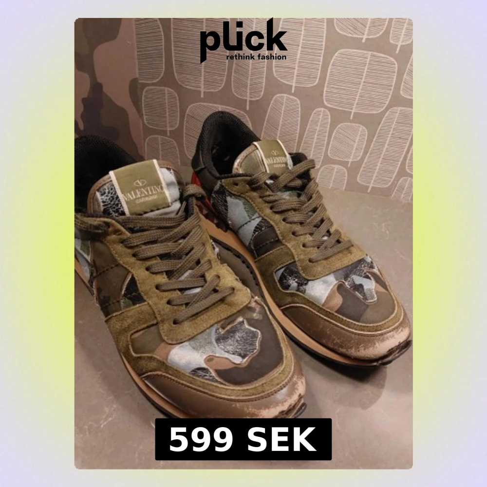 Sneakers med camo-mönster. . Skorna har klassisk låg profil, gröna skosnören strl.41
