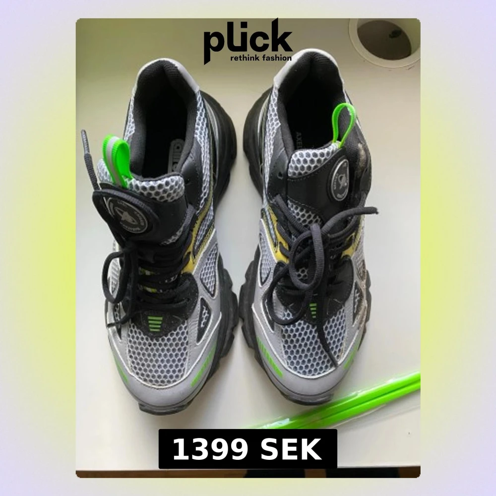 Chunky sneakers från Aircross i grått, svart och vitt meshmaterial med detaljer i neonlime och gult. Skorna har tjock sula, svarta snören och gröna dragflikar. Sportig design med ventilerande mesh och robust känsla.