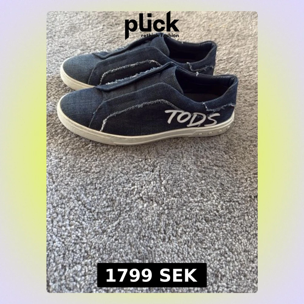 Snygga slip-on sneakers från Tod's i blå denim med vita detaljer och råa kanter. Skorna har en vit sula och loggan 'TOD'S' broderad på sidan. Perfekta nu till våren o för dig med en trendig stil. Skorna är limited edition och finns endast få av dessa i världen. Nypris ca 12 000