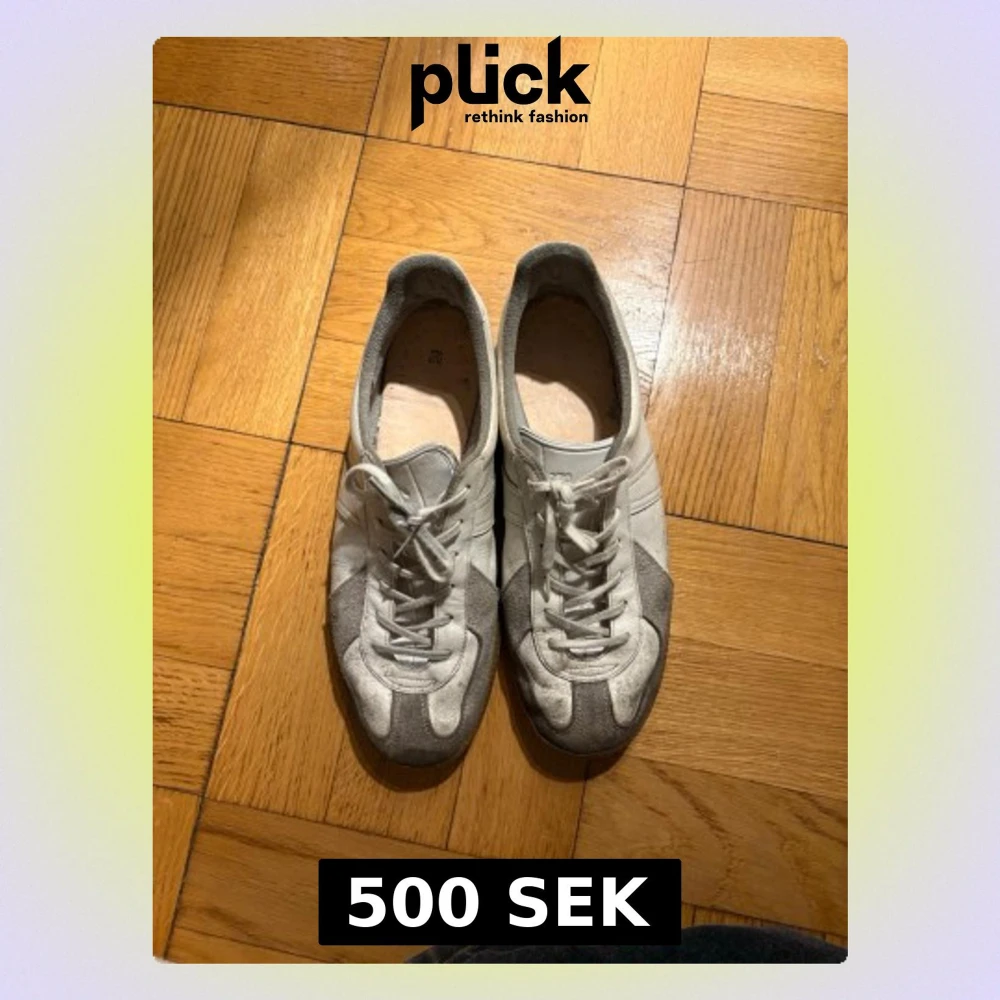 Säljer ett par stilrena sneakers i grått och vitt med klassisk låg profil. Skorna har ovandel i mocka och textil, vita snören och sula i gummi. Perfekta för dig som gillar retrovibbar och enkel design. Dessa är inspiration till Maison Margielas GATs. Storlek 270mm