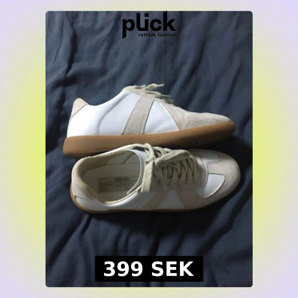 sneakers i vitt och beige läder och mocka med klassisk gummisula. Låga sneakers med snörning och stilren design, perfekta för en clean och trendig look. Märkning på insidan av skon.