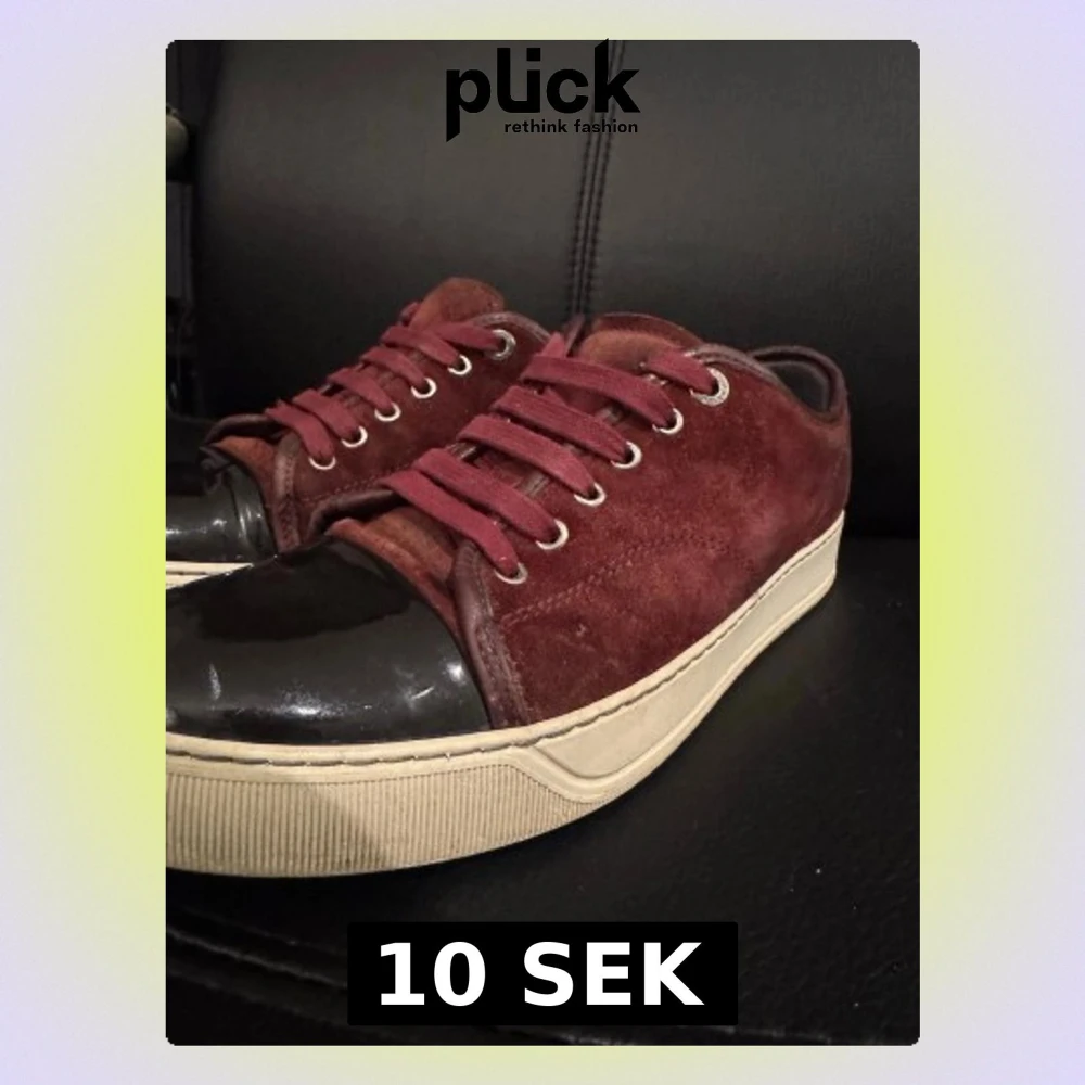 Snygga vinröda sneakers med ovandel i mocka och matchande vinröda skosnören. Skorna har en unik svart lackad tå och vit sula med beige inslag. Metallfärgade öljetter ger en extra detalj. Perfekta för dig som vill sticka ut med din stil.