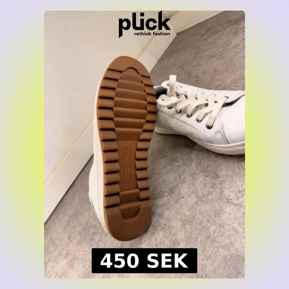 Snygga vita sneakers från Karl Lagerfeld i läder med gummisula i brunt. Skorna har en svart broderad logga på sidan och vita skosnören. Klassisk låg modell som passar till det mesta och har en cool detalj med den räfflade sulan.