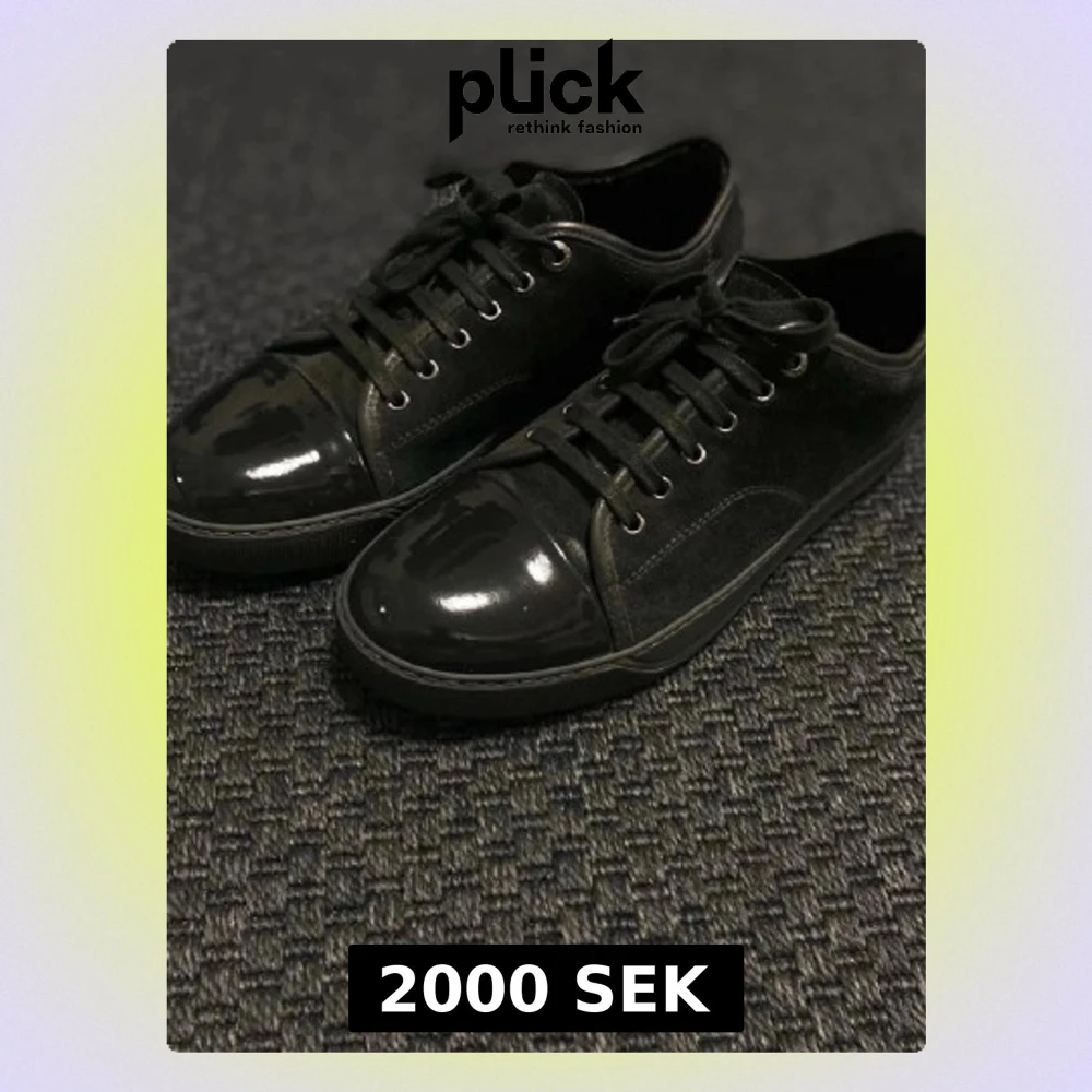 Stilrena svarta sneakers med glansiga lackdetaljer på tån och klassisk snörning. Ovandelen är i en mix av mocka och textil, vilket ger en snygg kontrast till den blanka tåkappan. Perfekta för dig som gillar en clean och modern look.