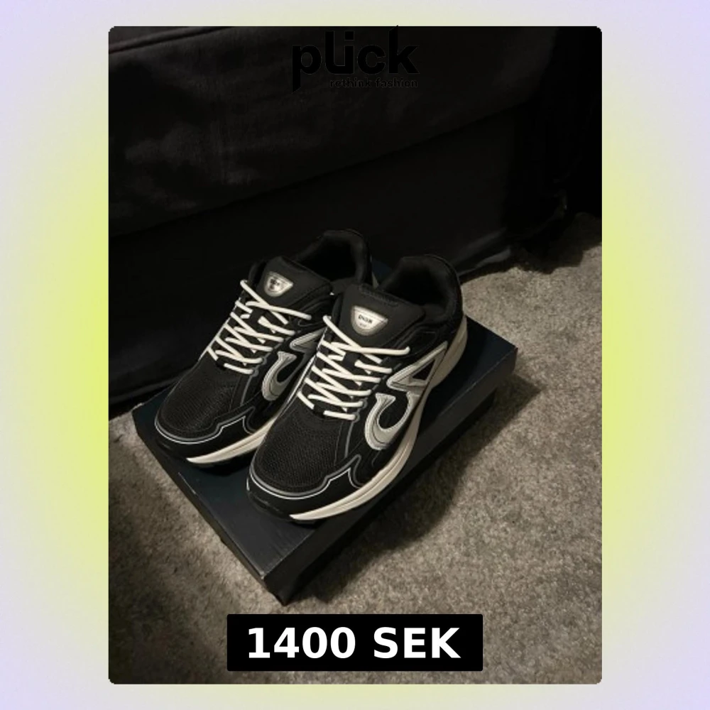 Snygga svarta b30 sneakers med vita och grå detaljer samt vita skosnören. Skorna har en sportig design med mesh och läderpaneler, samt en tjock vit sula. Perfekta för dig som vill ha en exklusiv och trendig look.