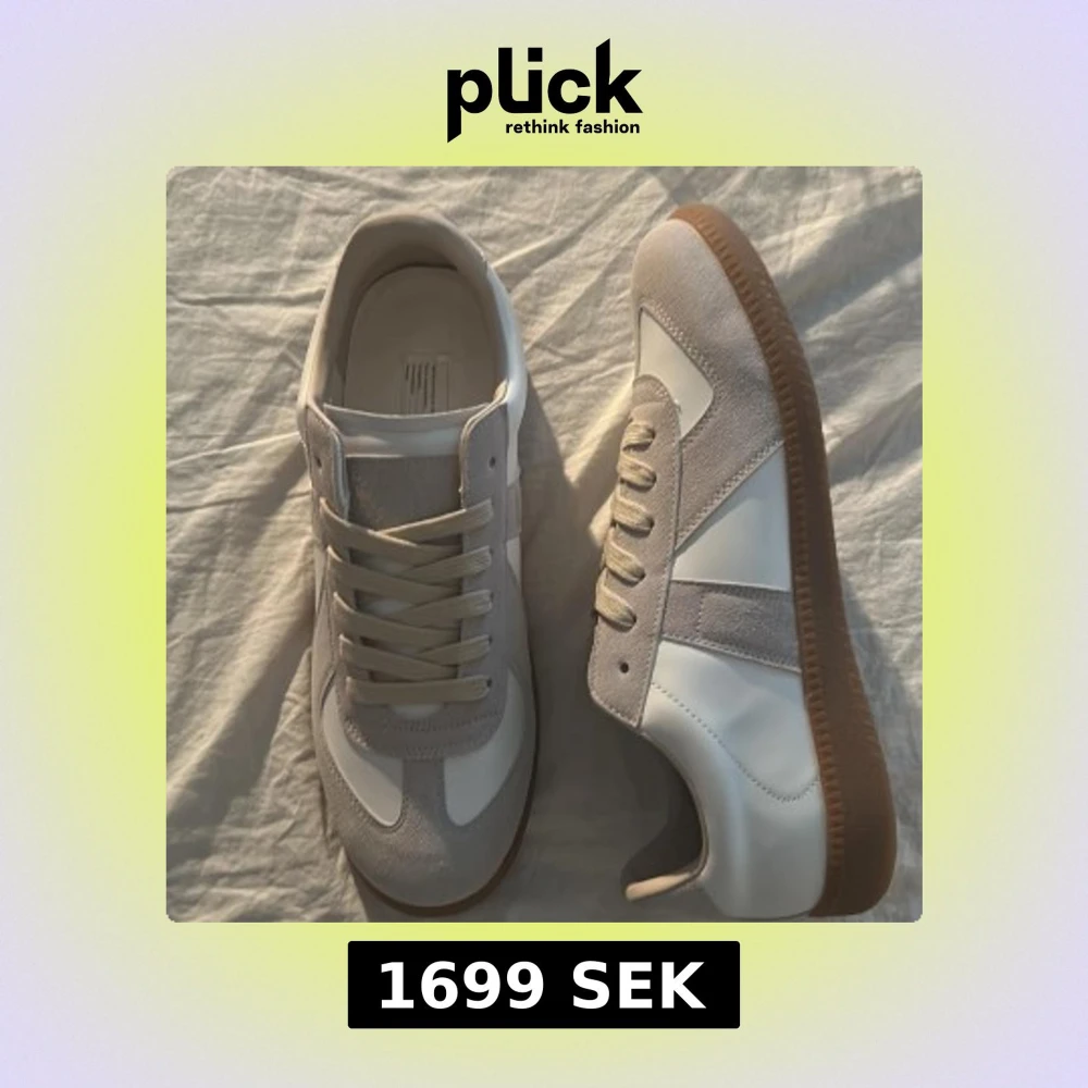 Snygga sneakers i vitt och ljusgrått med klassisk retrostil. Ovandelen är i en mix av mocka och slätt läder, med beige skosnören och en brun gummisula som ger en sportig vibe. Perfekta för dig som gillar stilrena och tidlösa sneakers.