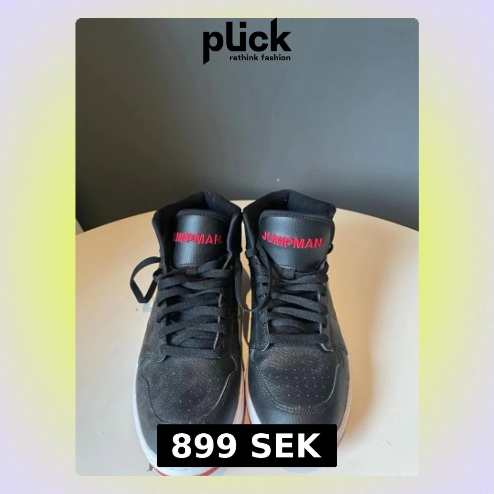 Snygga svarta sneakers från Jumpman med högt skaft och röda detaljer på tungan. Skorna har vita sulor med röd kant och är tillverkade i ett slitstarkt material med klassisk snörning. Perfekta för dig som gillar streetwear och sportig stil.