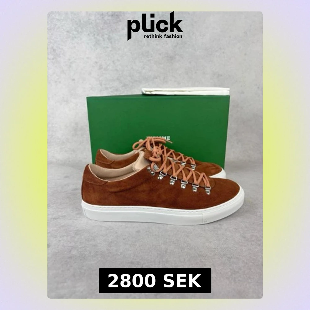 Vi har skorna i 41 och 44. Snygga sneakers i brun mocka från Diemme med vita sulor och matchande bruna skosnören. Skorna har metallhakar för snörningen och en låg silhuett som ger en clean och modern look. Perfekta för dig som gillar stilrena detaljer och premiumkänsla.