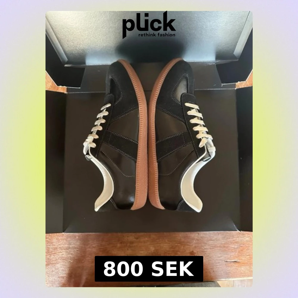 Snygga svarta gats i storlek 45. De har beigea snören och är i nästan nyskick. De är non-brand. Hör av dig vid frågor eller prisförslag!