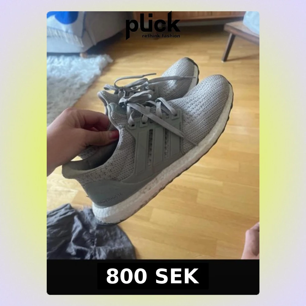 Snygga grå Adidas Ultraboost sneakers med stickad ovandel i mesh för extra andningsförmåga. Skorna har klassiska tre ränder på sidan, Boost-sula för skön dämpning och matchande grå skosnören. Perfekta för dig som vill ha både stil och komfort.