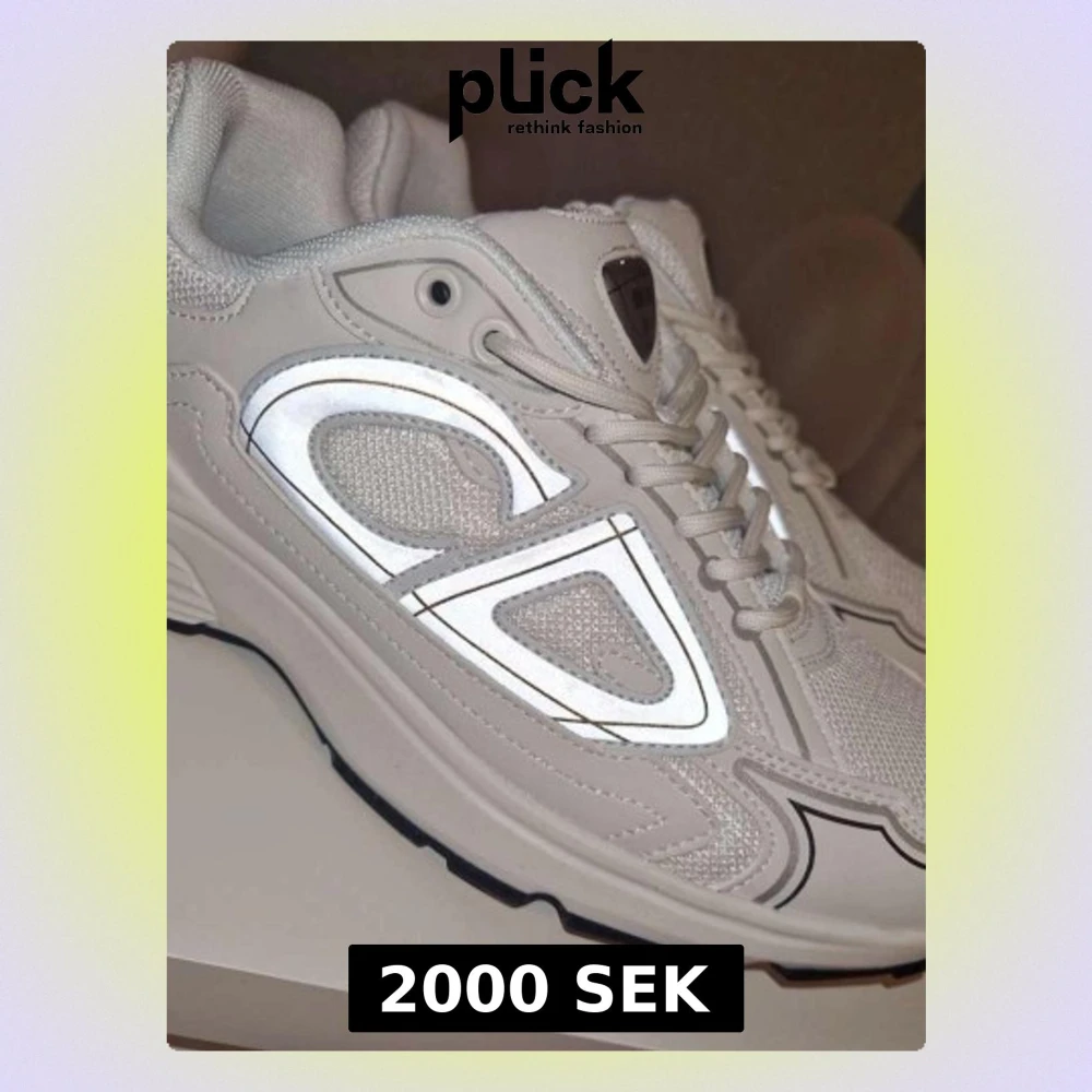 Snygga vita Dior B30 sneakers med reflekterande detaljer på sidorna och svart sula. Ovandelen är i mesh och syntetmaterial för en modern look. Klassisk snörning och tydlig Dior-logga på plösen. Perfekta för dig som vill sticka ut med stil.