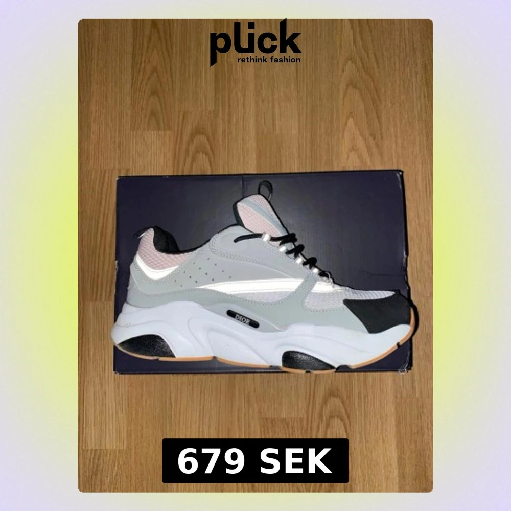 Använda fåtal ggr (3) Säljer ett par grå chunky Dior sneakers med vita och svarta detaljer samt inslag av beige och mesh-tyg. Skorna har en kraftig sula och reflekterande partier, samt svart logga på sidan. Perfekta för dig som gillar streetwear och vill sticka ut.