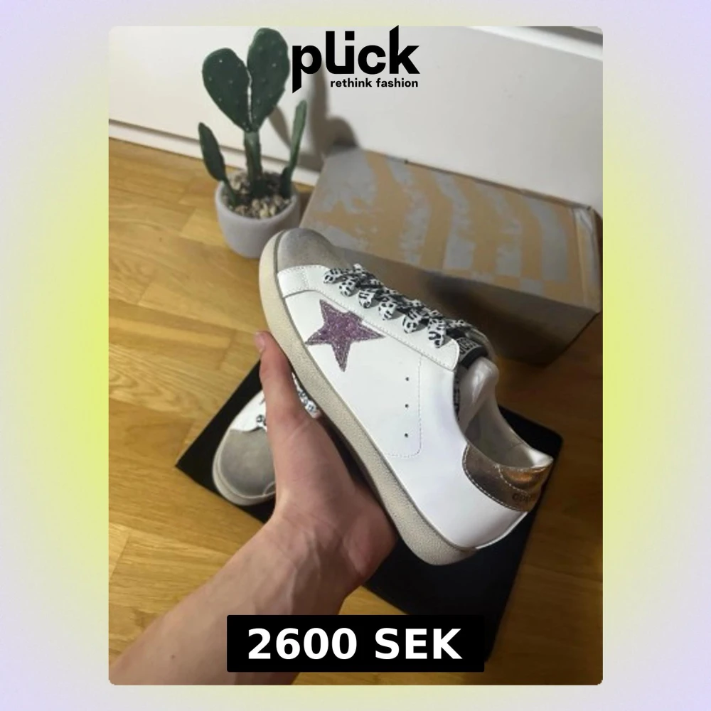 Golden Goose sneakers – stl 39 Säljer ett par Golden Goose i mycket fint skick. Endast använda vid något enstaka tillfälle, så de är i princip som nya. Skorna tillhör min tjej som köpte dem via Vinted med verifiering, men storleken passade tyvärr inte – därför säljs de vidare. Storlek: 39 Skick: Nästan nyskick Nypris: (7000) Pris: (2899kr) Hör av dig vid frågor eller om du vill ha fler bilder, Kan även diskutera priset vid snabb affär:)