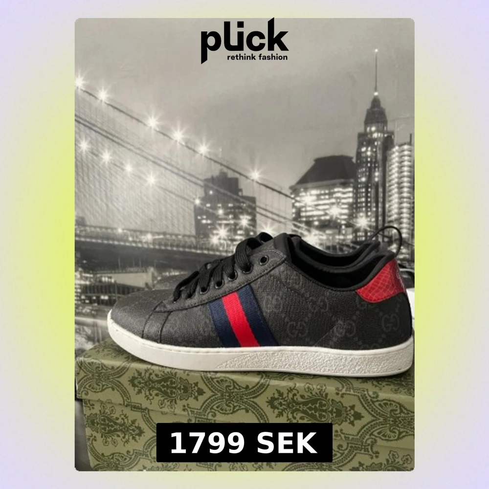 Gucci svarta sneakers med röd/blå detalj