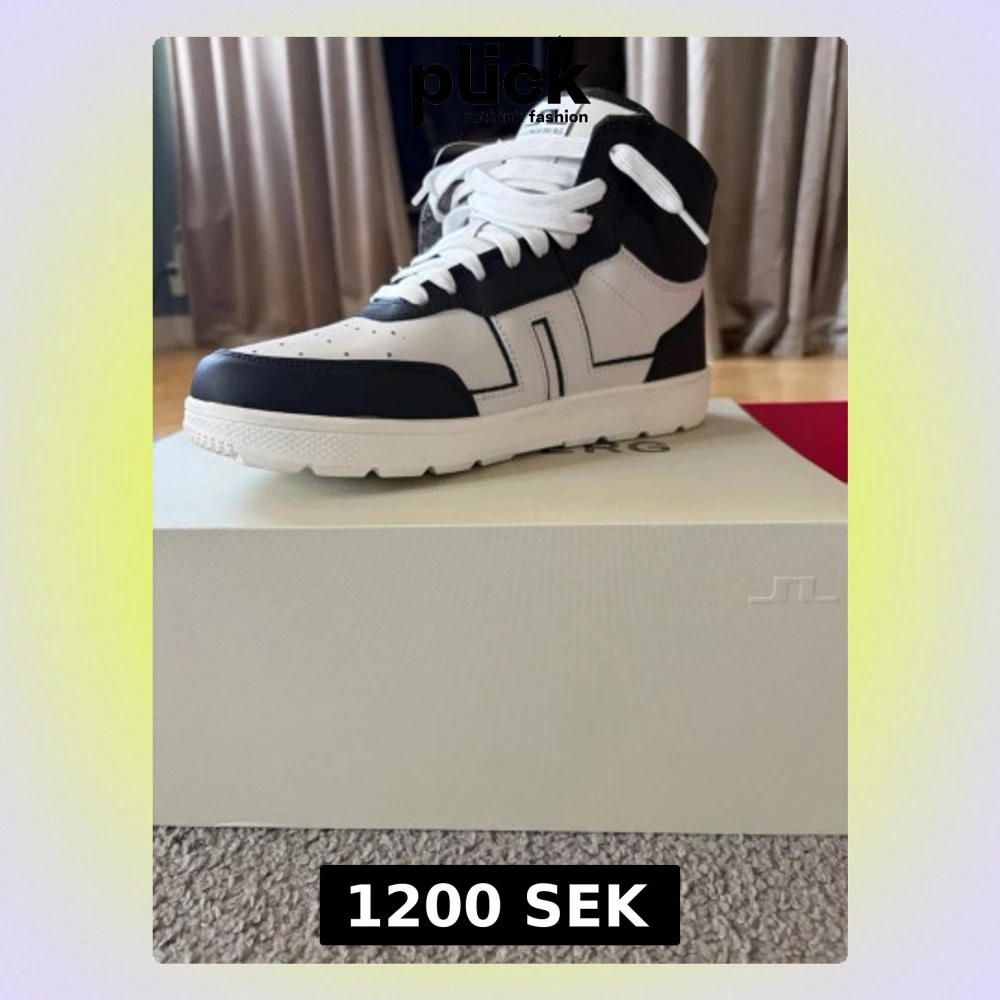 Snygga high-top sneakers från J.Lindeberg i svart och vitt läder med tydliga paneler och märkets logga på plösen. Skorna har vita snören och en robust vit sula. Perfekta för dig som vill ha en stilren och sportig look. Kan även andvändas som golf sko ⛳️. Lådan ingår i köpet. Ny pris 2500kr.