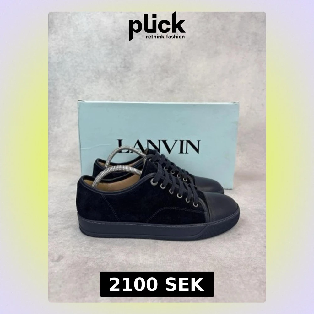 Stilrena svarta sneakers från Lanvin med ovandel i mocka och tåparti i slätt läder. Skorna har svarta skosnören, metallöljetter och en svart gummisula. Perfekta för dig som gillar en clean och klassisk look.