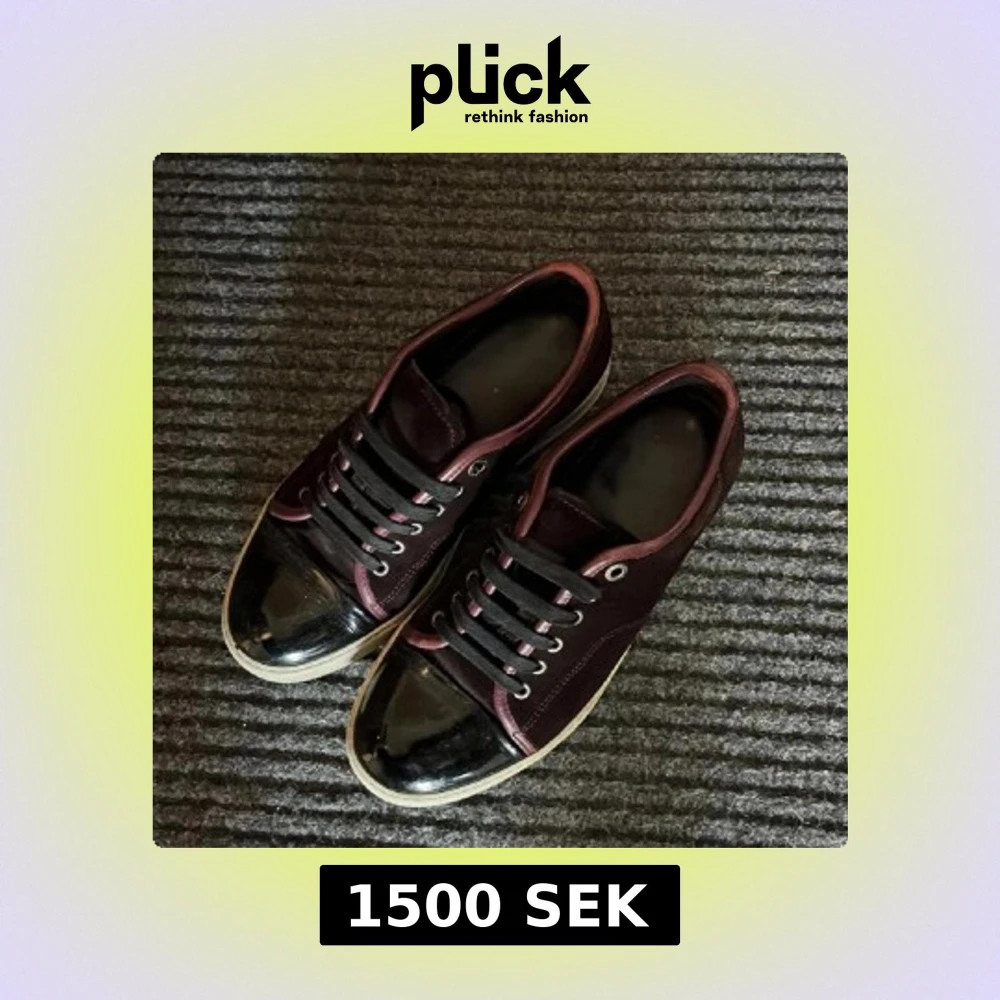 Snygga vinröda sneakers med svart lackad tå och svarta snören. Ovandelen är i mockaliknande material och sulan är vit. Skorna har metallöljetter och en stilren, låg profil som passar till många outfits.
