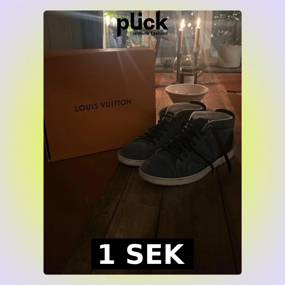 Snygga blå/gröna sneakers från Louis Vuitton med vita sulor. Skorna har en klassisk design med högre skaft och är tillverkade i mockaliknande material. Perfekta för dig som vill ha något exklusivt och stilrent. Bra skick behöver bara lite kärlek med mocka borste. Nypris 14,000. Kom med prisförslag!