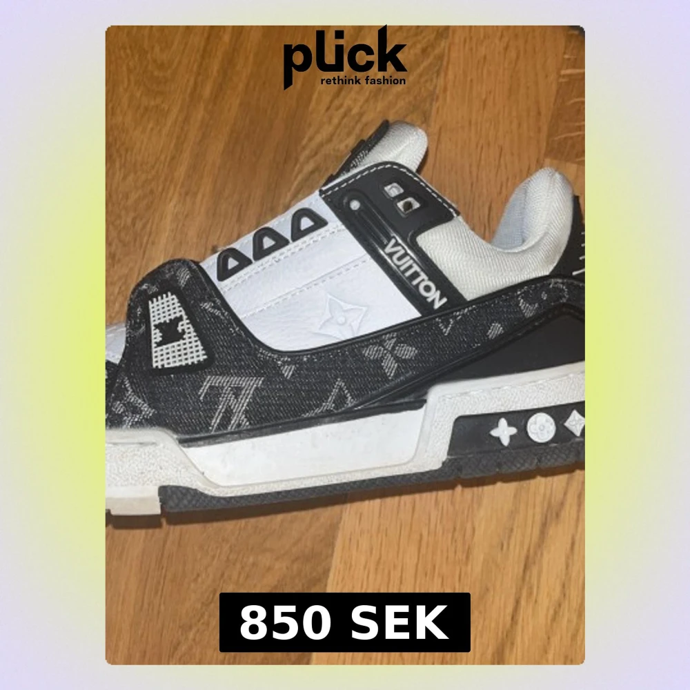 Snygga Louis Vuitton sneakers i svart och vitt med klassiskt monogrammönster på textilen och detaljer i läder. Tydlig logga på sidan och sulan. Skorna har en chunky sula och coola kontrastdetaljer som ger en lyxig streetwear-vibe.