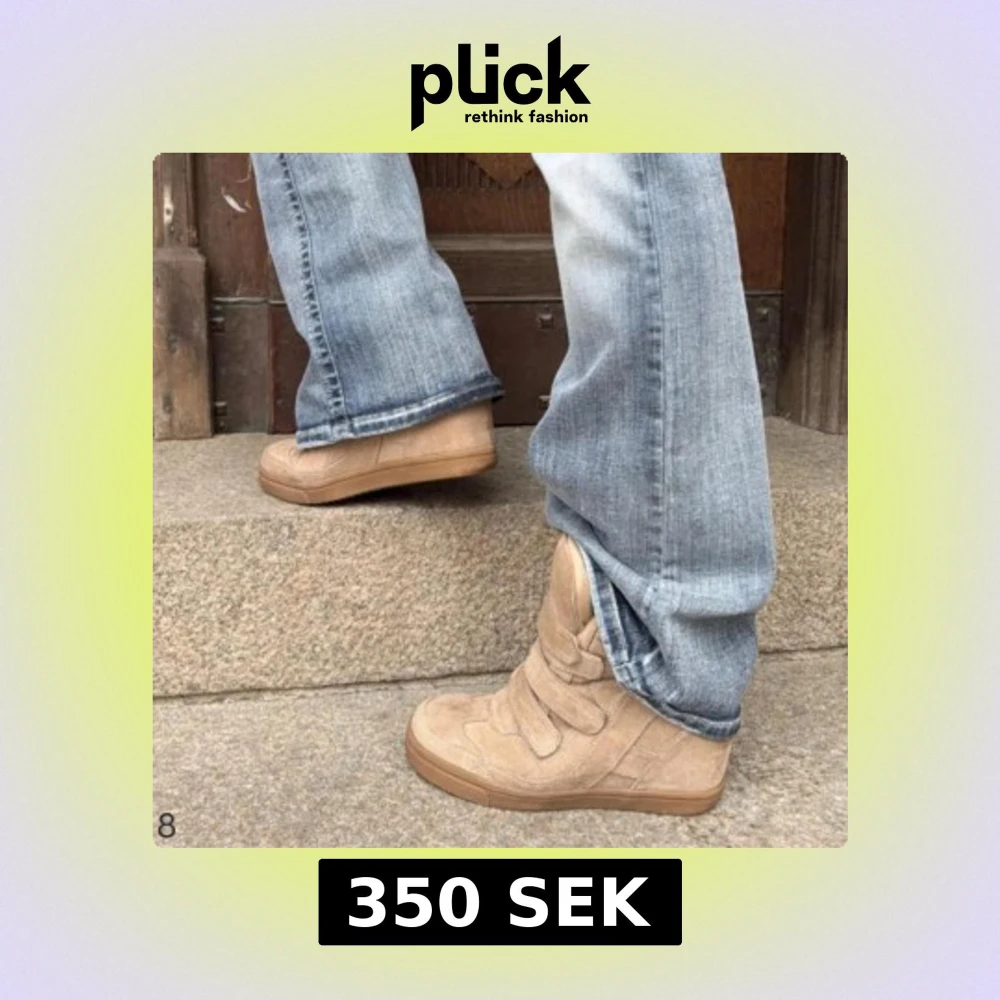 Snygga beige sneakers med tre breda kardborreband och diskret sömnad. Skorna har en låg siluett och en klassisk gummisula. Perfekta för en avslappnad streetwear-look och passar till jeans eller andra casual outfits.