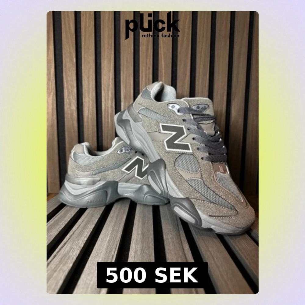 Snygga grå New Balance 9060 sneakers med chunky sula och ikoniska N-loggan på sidan. Ovandelen är i mesh och mocka för en sportig vibe. Skorna har gråa skosnören och detaljer i olika nyanser av grått. Perfekta för dig som gillar streetwear och vill ha något bekvämt och stilrent.